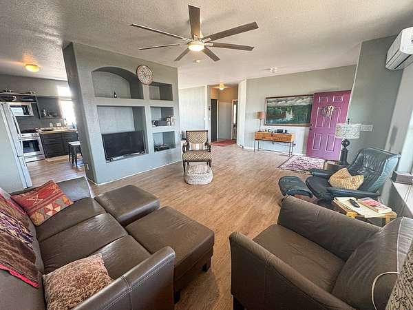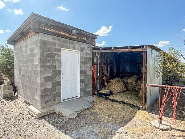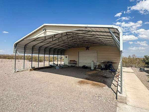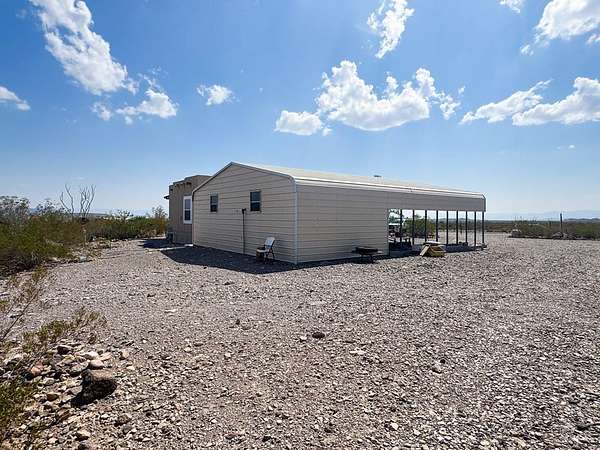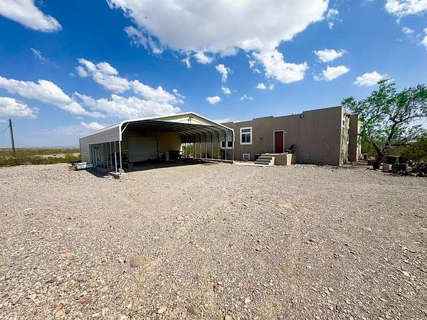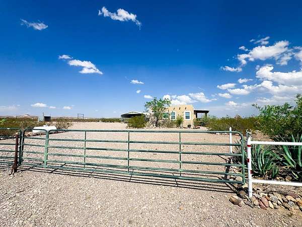 Est $1,587/moSecluded 10-acre ranch just 4.7 miles north of Presidio. This 2006 stucco-veneered mobile home offers 3 beds, 2 baths, and a covered front porch. Property includes a 30'x40' carport/workshop, 3-stall livestock barn with multiple traps, tack room, feed shed, and shade structure. Fully fenced with. Private water well with two storage tanks. Native desert landscaping provides a peaceful setting with easy access to town. Ideal for livestock, hobbies, or country living with modern utilities.