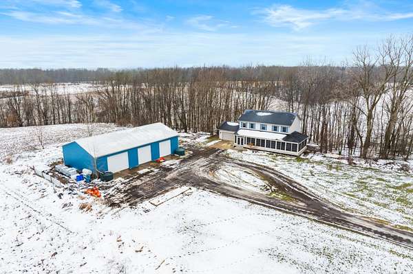 Renovated from top to bottom, this sophisticated country oasis offers a rare blend of privacy, modern luxury, and energy efficiency set on 5 serene acres just 1.5 hours from Chicago. Every detail has been thoughtfully updated to reflect timeless design, comfort, and quality throughout. The main living level is anchored by a refined kitchen featuring quartz countertops, new appliances, and effortless flow to an expansive screened-in porch and rear porch-perfect for indoor-outdoor living and entertaining. Two distinct living areas provide flexibility for both relaxed daily living and hosting, while abundant natural light and generous proportions create an inviting yet elevated atmosphere. Upstairs, four well-appointed bedrooms and two full bathrooms include a serene primary suite retreat with a spa-inspired en-suite, highlighted by modern designer tile and contemporary finishes. The finished lower level functions as a private guest suite, complete with a second kitchen, gas fireplace, and walkout access to the backyard ideal for extended stays, multi-generational living, or hosting guests with comfort and privacy. Additional highlights include geothermal heating, an EV charger, and an impressive 40' x 70' pole barn with a three-car garage, offering abundant space for vehicles, equipment, and acreage essentials. With short-term rental potential and room to add future amenities, this rare offering seamlessly blends luxury finishes, energy efficiency, privacy, and convenience in a peaceful country setting ready to enjoy as is or elevate even further.