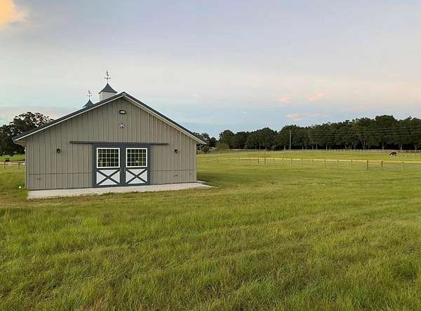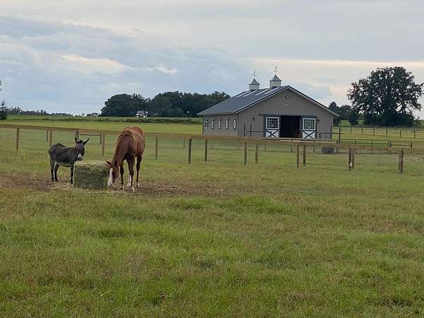 Barn for rent in Romeo, just a short 15 minute drive from the World Equestrian Center. Situated on a private 40-acre farm, the lease includes use of approximately 15 acres of pasture. The barn is equipped with 8 12X12 stalls, feed room, tack room, bathroom, 2 wash racks, an automatic fly spray system, StableComfort stall mattress system, and Nelson automatic waterers in each stall. An RV hookup is also available. There is a flat area to the left of the barn the previous tenants used as a jump field. This peaceful and well-maintained property offers a high-quality setup for boarding, training, or personal use. Please note: the full 40 acres is not included in the lease--only about 15 acres are available for use.