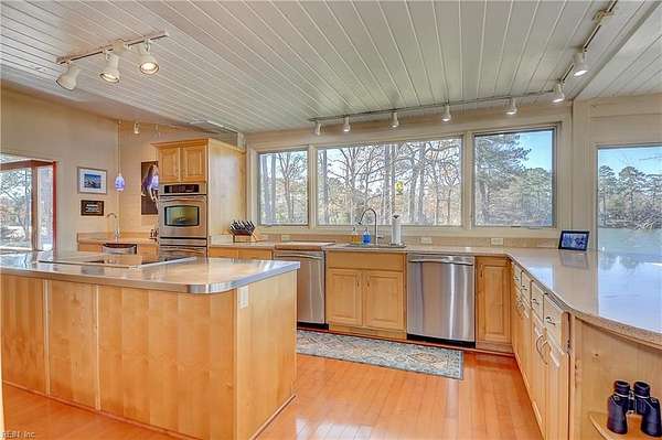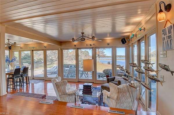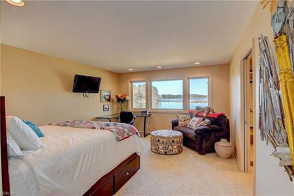 Est $5,469/moOwn your own lakefront peninsula in this awe inspiring 2.8 acre lot on the water! Over 950' of shoreline that looks beyond the lake to the river. Over 5500+ sqft of living space, all on one level! The kitchen boasts 2 dishwashers/double ovens, wet bar and beverage cooler, and is perfect for entertaining. Huge dining room with expansive picture windows. In-law suite capability with separate entrance and family room area. All bedrooms have private bath access. 3 car detached garage and an additional building for a gym or office. Never leave home because you will always be on vacation!