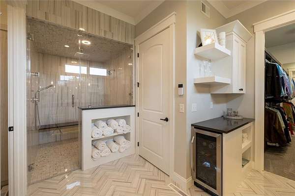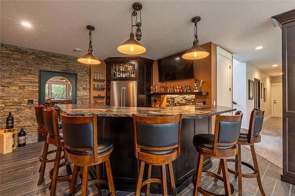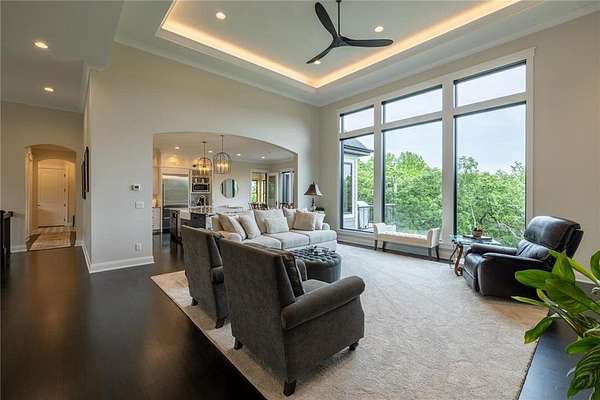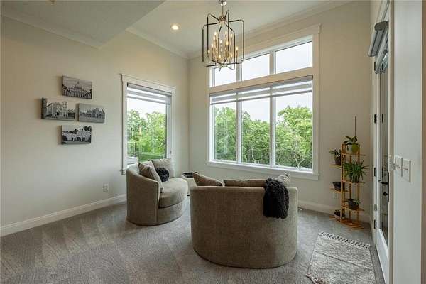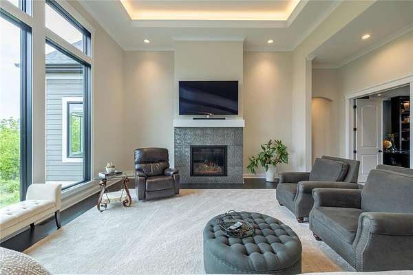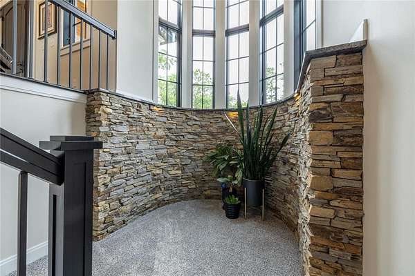 Welcome to 1500 Weatherhill Ridge Ct SW, where top quality construction meets modern luxury in one of the region's most exclusive private retreats. Hidden beyond a stately wrought-iron gated entrance and nestled on over 4 acres of lush, wooded landscape, this breathtaking estate is a rare fusion of nature, design, and sophistication. A long, winding drive leads through manicured grounds to a dramatic circular entry crowned by a fountain. The home's striking facade combines rich stonework, turret-inspired vertical windows, and architectural symmetry. Dual covered decks, a walk-out lower level, and expansive covered patio spaces with hot tub hook up offer year-round connection to the serene surroundings. Inside you'll find soaring ceilings, dark hardwood floors, and walls of windows framing uninterrupted woodland views. A piano-ready grand entry sets the tone for refinement throughout. The main living area features a gas fireplace with custom tile surround, while the adjacent sunroom, wrapped in glass, offers four-season relaxation beside a stone fireplace. The heart of the home is a designer chef's kitchen, anchored by an oversized waterfall island, Wolf and Sub-Zero appliances, pot filler, double ovens, and a farmhouse sink. A butler's pantry with a second fridge, prep sink, and additional storage is tucked behind a custom frosted-glass door, practical luxury at its finest. The main-level primary suite is a true sanctuary, featuring ambient tray ceiling lighting, private deck access, and a spa-caliber ensuite with double vanities, upscale steam shower, floor-to-ceiling tile, toe-kick lighting, and a beverage center conveniently located beside the dual walk-in closets. A richly finished home office for two with custom built-ins offers a distinguished space to work, while the lower level is an entertainer's dream. Host guests at the stone-accented full bar, unwind in the theater lounge, challenge friends in the game room, or retreat to the temperature-controlled wine cellar for a quiet tasting. With 6+ garage spaces, there's room for every vehicle and more, making it an absolute dream for any car enthusiast. More than just a home, this is your own private luxury retreat nestled in nature.