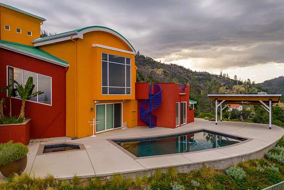 Contemporary Masterpiece in West Redding - Discover this contemporary jewel designed by renowned architect Les Melburg, perched on the hillside of West Redding in Middletown Park. This eclectic piece of art offers over 14 acres of gated privacy, featuring a 3-story custom stucco residence surrounded by mature, drought-tolerant landscaping and a 17.34 kW solar PV system (owned). The sweeping drive and expansive courtyard lead you to a grand entrance that will take your breath away. Breathtaking Views and Spacious Living - Step inside to be greeted by soaring heights and massive glass panels capturing 200-degree views of the region's mountain ranges, city lights, and the valley below. The open-concept great room, bar, dining, and kitchen areas are perfect for entertaining, with over 5,000 sq. ft. of space to accommodate all your guests. The entry level features a curved staircase leading to the crow's nest library and balcony/aviary, offering panoramic views as far as the eye can see. Luxurious Amenities - The main living space and primary suite are conveniently located on the entry level, allowing for single-story living in a three-story home. Beyond the sunken bar and wine room, a sweeping staircase leads to the guest suites and a cedar-lined sauna. The hillside pool area, overlooking the grandeur of Mount Lassen, features a saltwater heated pool and a custom gazebo for ultimate relaxation. Gourmet Kitchen and Wine Cellar - This 2x6 constructed home boasts spectacular views from every angle. The gourmet kitchen is equipped with two Dacor ovens, two dishwashers, a Sub-Zero refrigerator with a separate freezer drawer, and a large walk-in pantry. Wine enthusiasts will appreciate the walk-in, self-regulating wine cellar, and the whole-house generator ensures your wine maintains its optimum temperature during power outages. Additional Features - The main floor includes a separate studio with a full bath and large sliding doors to a private deck. For fitness enthusiasts, the fully-equipped gym downstairs is a must-see. Prime Location for Adventure - Located just 20 minutes from Whiskeytown Lake and 30 minutes from Shasta Lake, this home is perfect for those who crave adventure. Redding offers multiple golfing opportunities, including two country clubs (Riverview and Tierra Oaks). The North State provides tremendous recreational opportunities, with excellent mountain biking trails minutes from home at the Swasey Recreation Area, and hiking at Castle Crags, McCloud Falls, Burney Falls, or skiing/snowboarding at Mt. Shasta, all within 1.5 hours of your new home.