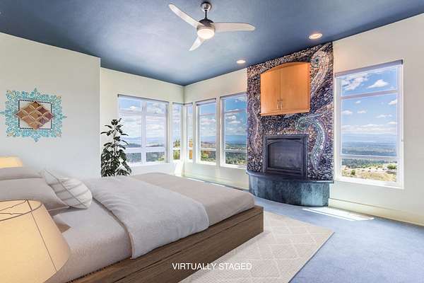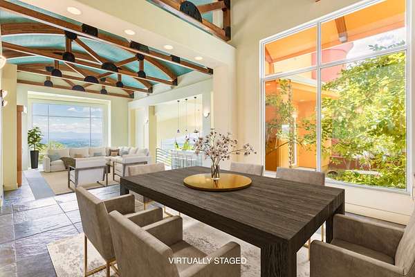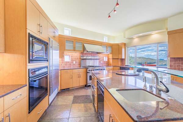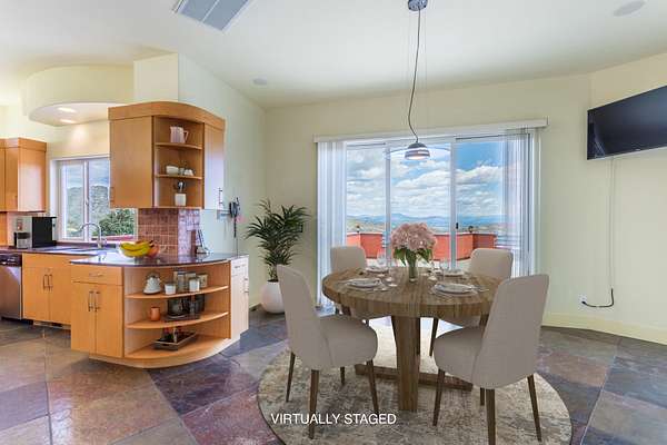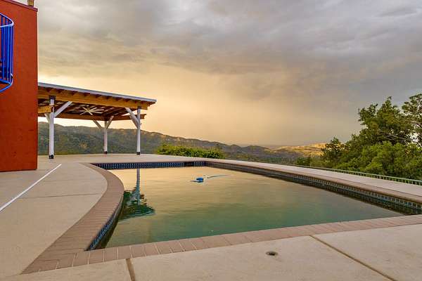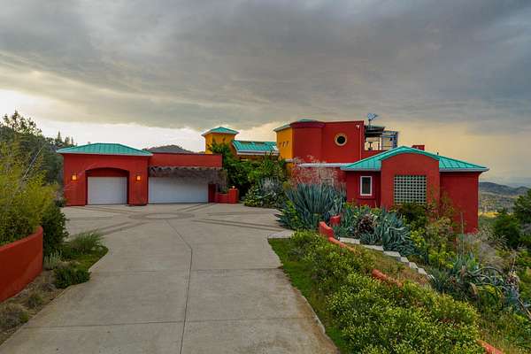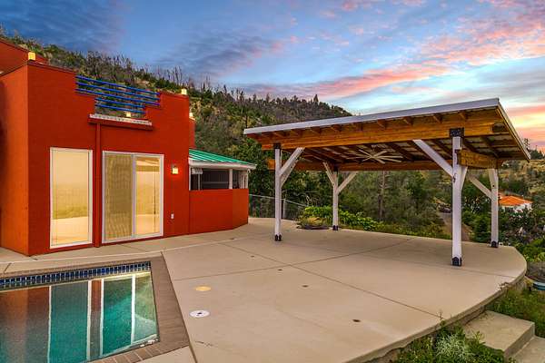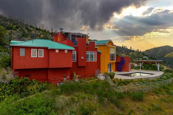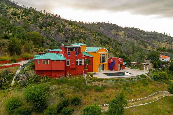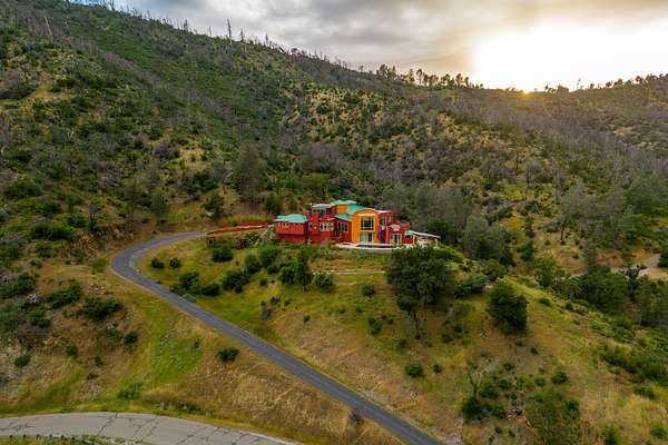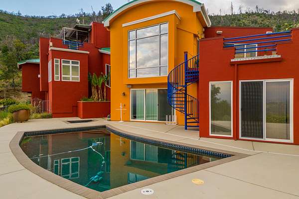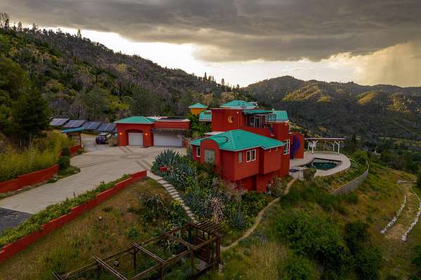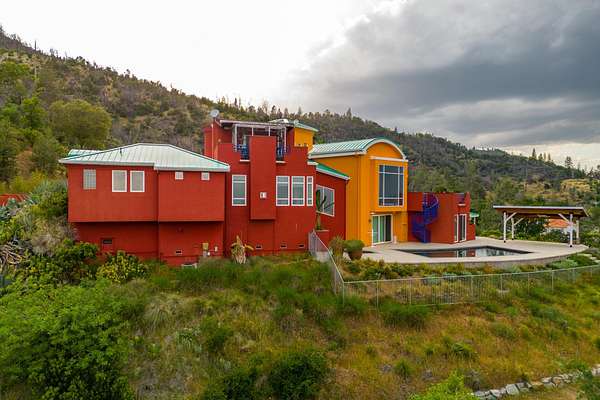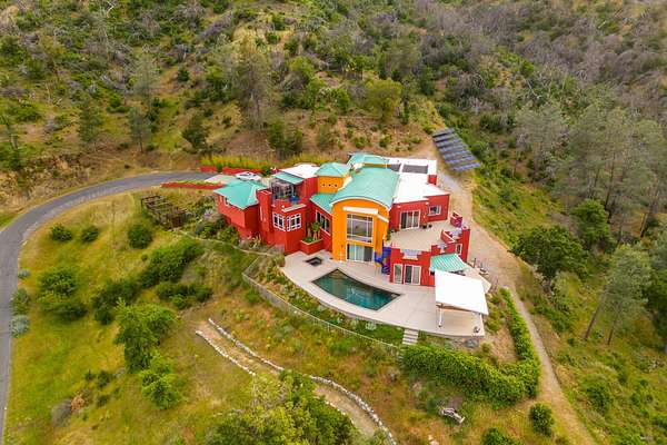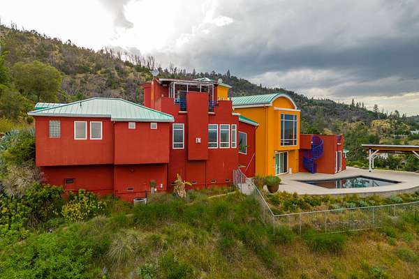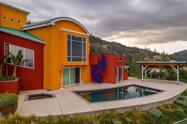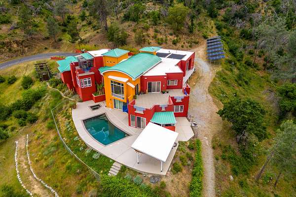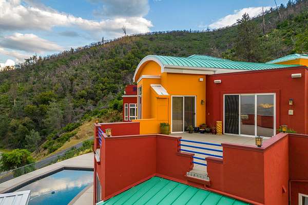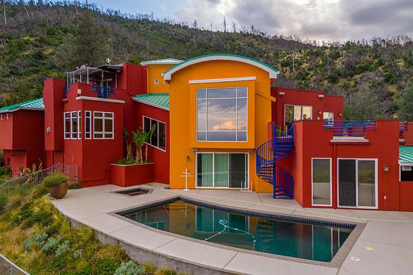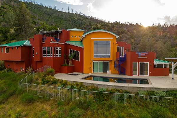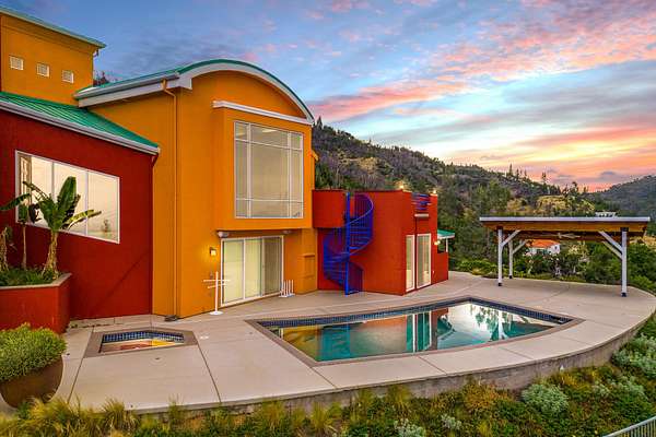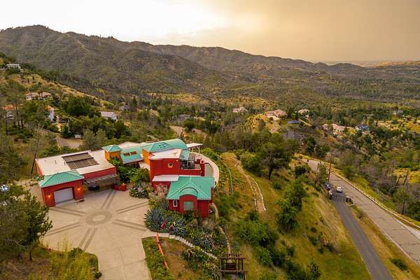 Experience a striking contemporary residence gracefully set on the hillsides of West Redding in Northern California. This one-of-a-kind architectural gem sits on more than 14 acres of gated seclusion and features a custom three story stucco home framed by mature, drought tolerant landscaping and an owned 17.34 KW solar PV system. A sweeping driveway and expansive courtyard create a dramatic approach to a grand entrance that immediately sets the tone. Inside, soaring ceilings and expansive glass walls reveal breathtaking 200 degree vistas of surrounding mountain ranges, sparkling city lights, and the valley below. The openconcept great room, bar, dining area, and kitchen offer over 5,000 sq. ft. designed for effortless entertaining. A curved staircase on the entry level leads to the crow's nest library and balcony/aviary, where unobstructed views stretch endlessly across the horizon. The primary living areas and the primary suite are thoughtfully located on the entry level, providing the ease of single story living within a multi level home. Past the sunken bar and wine room, a sweeping staircase guides you to guest suites and a cedar lined sauna. Outside, the hillside pool terrace overlooking the majesty of Mount Lassen features a heated saltwater pool and a custom gazebo, creating a serene retreat. Built with 2x6 construction and designed to maximize views from every angle, the home's gourmet kitchen. Wine lovers will appreciate the walk in, self regulating wine cellar, while a whole house generator ensures ideal conditions are maintained even during power outages. The main floor also offers a private studio with a full bath and large sliding doors opening to its own deck. Downstairs, a fully equipped gym awaits those who prioritize fitness and wellness. Just 20 minutes from Whiskeytown Lake and 30 minutes from Shasta Lake, this property is perfectly positioned for outdoor enthusiasts. Redding's recreational offerings include multiple golf courses such as Riverview and Tierra Oaks and some of the region's best mountain biking at the nearby Swasey Recreation Area. Iconic Northern California destinations like Castle Crags, McCloud Falls, Burney Falls, and Mt. Shasta for skiing and snowboarding are all within 1.5 hours of your doorstep.