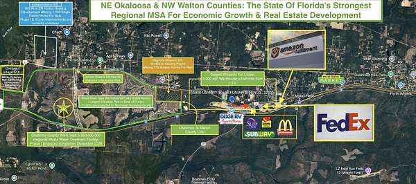 West Walton Commerce Park offers a 5,000 sf warehouse building available for lease, within a mile west of the I-10 & Hwy 285 Interchange, next to the existing FedEx Distribution Center and the future Amazon Distribution Center. And, just 5 miles to the west of the subject property is the Shoal River Ranch Industrial Park, the State of Florida's largest Industrial Park, as announced by Gov. DeSantis, the State of Florida's Land Planner, and Okaloosa County's EDC.