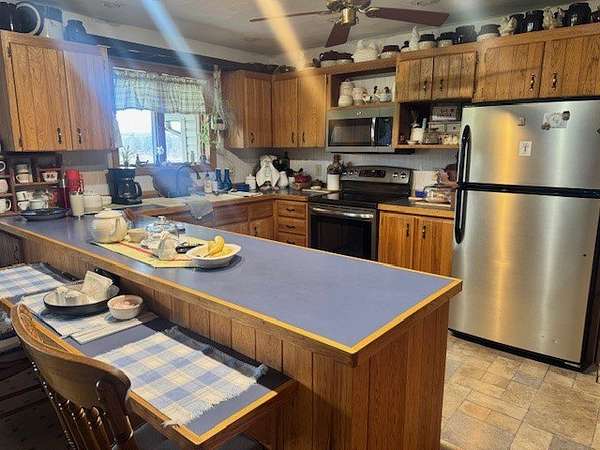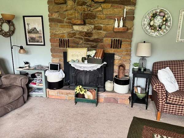 eautiful ranch-style home on a charming 13.75-acre farmette. This well-maintained property features 3 bedrooms and 2 bathrooms, including a recently remodeled primary bath. The kitchen showcases custom hickory cabinetry with abundant storage, while the cozy living room offers a welcoming fireplace with mini split for heat/air. A full unfinished basement with corn/pellet stove and outside entrance.The property is fully equipped for country living, including a 30' x 32' barn with electric and water. A spacious 32' x 56' machine shed with electricity provides ample room for farm equipment and storage. Additional outdoor features include a fenced pasture with electric fencing, a chicken coop, and two corn cribs. Enjoy the peaceful setting with a mini pond and beautifully landscaped flower beds filled with perennials that bloom from spring through fall. The home also includes an attached 2-car garage with a convenient mini kitchen, adding extra functionality to this exceptional property.
