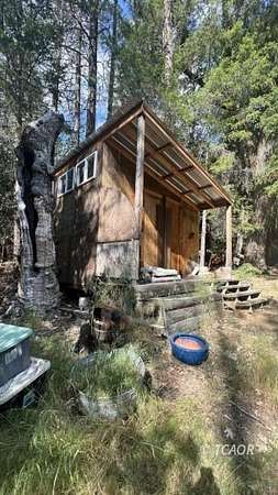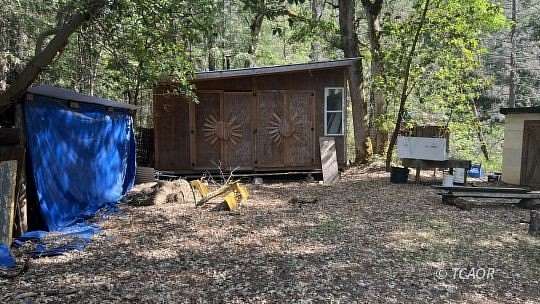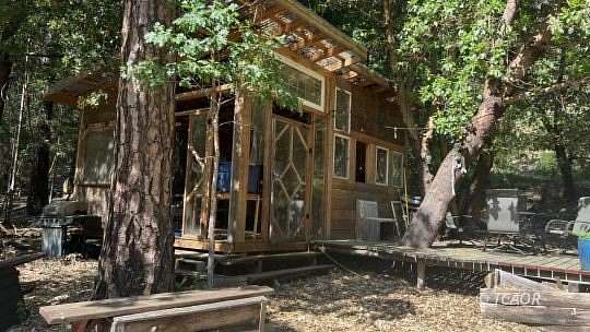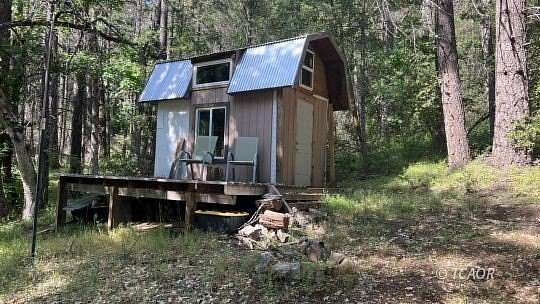 Come listen to the creek, sit on your porch and imagine the stress just flow away in this truly off-the-beaten-track property. All ready for you to bring your gear and be in The Wild! Lovely acreage along the year-round creek with thoughtfully designed useful out buildings. This off-grid, cozy spot is ripe for your imagination. Great spot for solar or hydro electricity. There is no septic tank, or well and electricity is available but is not currently connected. Property boasts a community kitchen, outdoor workshop, two well built sleeping cabins, other outbuildings and garden areas plus (3) 5000 gal. water tanks. Its biggest benefit is the peaceful beauty of nature with no neighbors nearby and behind an electronic gate, if you're looking for privacy, seclusion and space to move and room to breathe, its here! This land is two parcels, one is 8+ and very useable, the other 86+ is steep but boasts the garden beds and water tanks. For outdoor adventurers looking for a homestead don't let this one pass by. It's a wonderful spot in our county. The accuracy of information provided is deemed reliable but is not guaranteed, is subject to change and should independently verified by buyer