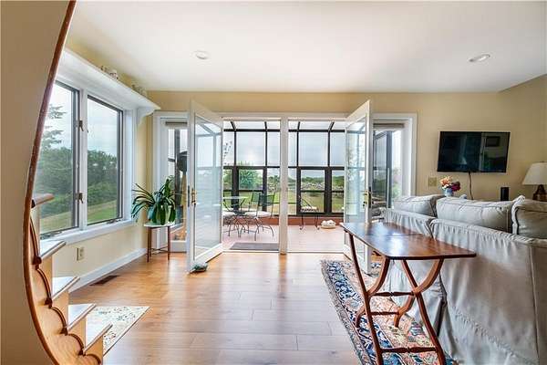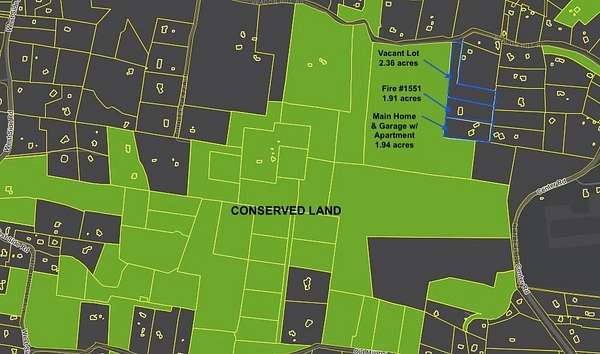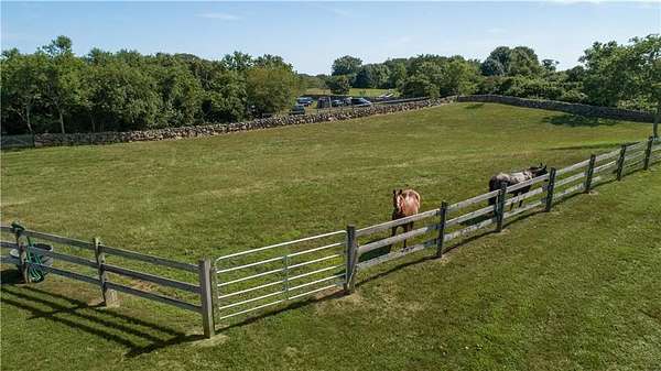 Discover a rare opportunity to own a stunning 6+ acre estate in the heart of Block Island, comprising three distinct lots-two developed and one vacant. This unique property features a spacious, sunlit 5-bedroom, 3-bathroom residence that radiates comfort and elegance, along with a 2-bedroom, 1-bathroom apartment ideal for guests or rental income. The estate includes a 3-car garage with ample storage space and a state-of-the-art 5-stall barn equipped with a roomy storage/hay/studio loft, tack room, and farrier station. An attached double-depth 3-bay garage provides even more storage. The meticulously maintained grounds boast beautifully rebuilt stone walls, sturdy board fencing, and a secure grass paddock, all surrounded by 80 acres of conserved land ensuring privacy and tranquility. The vacant lot offers additional potential for development or expansion. This versatile property could transform into an Island farm, serve as a serene private residence, or become a cherished family compound. With significant tax benefits under the Farm Tax category, it's a wise investment for those seeking sustainable living. Don't miss this exceptional chance to own three lots on Block Island, where tranquility and endless potential come together. The barn Lot (81-2) can be converted into a single-family home; it needs updated electrical work, septic and well, architectural rough plans are available. Main House Lot - 1.94 acres: Barn Lot - 1.91 acres: Vacant Lot - 2.36 acres