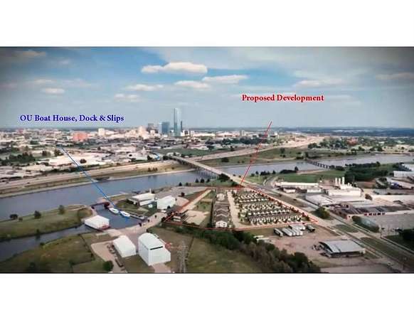 An Oklahoma City APPROVED PUD FOR MIX USE! This OKC RIVER FRONT property measures 5.2 AC (mol) and located at 1501-1511 Exchange Ave. This location offers incredible views of the OKC downtown skyline and the Oklahoma River plus the site is visible from I-40. The owner has provided, AS AN EXAMPLE only, a layout of how this property can be used to develop a luxurious condominium community offering 55 housing units plus room for a restaurant plus bar overlooking the OU boat house and river. This concept includes two dog parks, a swimming pool, club house with a gym, two pickleball courts & one tennis court all in common areas with the restaurant/bar being opened to the general public. The bar located on the 2nd floor could host live bands on the balcony that overlooks the OU boat house and river. Adjacent to this property is the Oklahoma City River Trails. These trails run for 13 miles along the river and pass by many attractions like the Wheeler District located just to the East. If developed for housing, the residents of this community can jump on the trail with ease while leaving their cars at home! Be a part of one of the fastest growing and up-and-coming areas of OKC! Minutes from the famous OKC Stockyards, Downtown OKC, Bricktown, RiverWalk, Mid-town, the Art District, Hotels, NBA Thunder Dome, Scissor tail park, Botanical Gardens & much more. Also located in the empowerment zone, see photos for additional information. All proposed development ideas for the subject site are stated as an example only, therefore all development plans would be subject to approval by the city of Oklahoma City. OKC is being noticed as a place to live as well as invest. In 2028, OKC is set to host part of the 2028 Summer Olympics with the Riversport Rapids hosting the Canoe Slalom events and Devon Park in the Adventure District hosting the softball competitions. "VISION IS THE ART OF SEEING THE INVISIBLE".