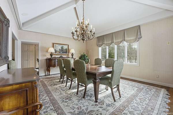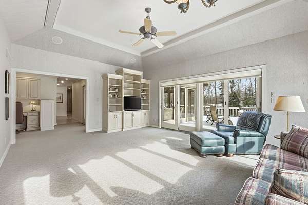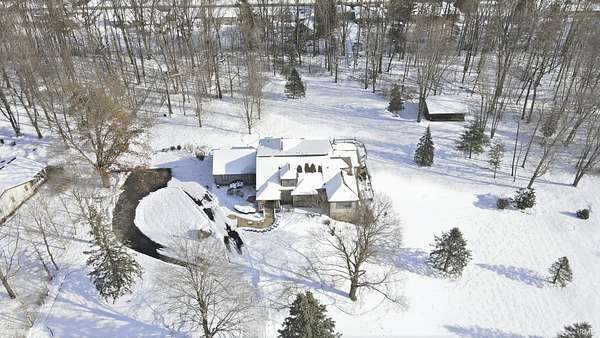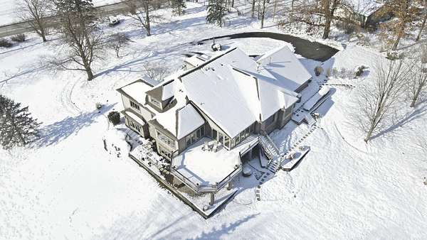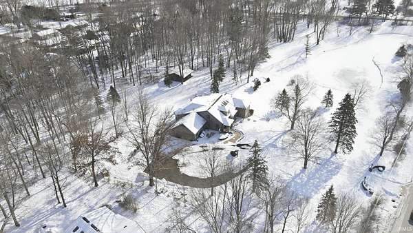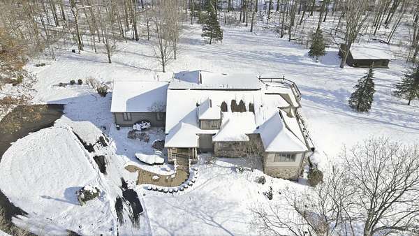 Stunning Estately Home on 9.3 Acres! Featuring an elevator, finished walk-out basement and private pond. Set on over nine private acres across three parcels, this impeccably maintained executive home offers refined living in a picturesque setting. A long paved drive leads to a 4-bedroom residence designed for comfort, accessibility, and effortless entertaining. The main level features a welcoming foyer, sun-filled morning room, and a spacious kitchen with breakfast bar, wet bar, and built-in desk. Plus plenty of cabinetry. A formal dining room and adjoining sunroom open to a large deck overlooking the landscaped grounds and pond. A built-in speaker system enhances both indoor and outdoor spaces. The main-floor primary suite offers a great en-suite and walk-in closet, while a second main-level bedroom is ideal for guests. Two additional bedrooms and a full bath are located upstairs. The walk-out lower level includes a spacious family room, a private office with custom built-ins and a full bath, and an oversized laundry/hobby room with abundant storage and a bar refrigerator. Additional amenities include an elevator, a 2.5-car attached garage, and an outbuilding. A perfect blend of privacy, elegance, and functional design--ideal for both everyday living and exceptional entertaining.