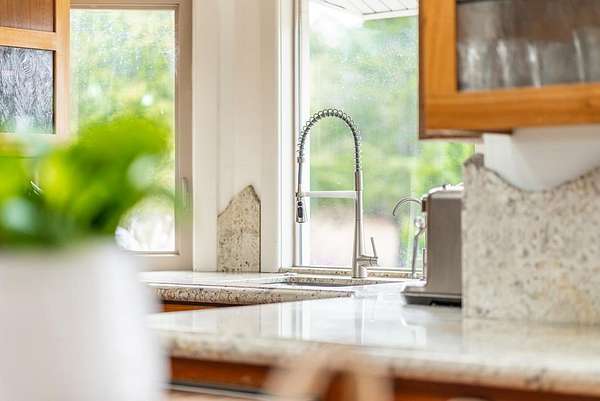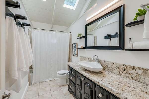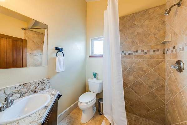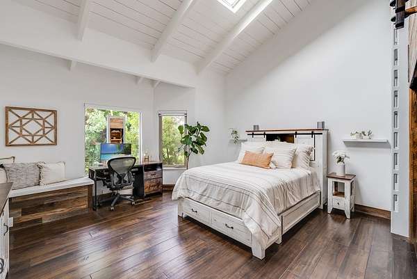 - High Ceiling, Low Flow Shower, Low Flow Toilet, Open Beam Ceiling, Skylight, Solar Power