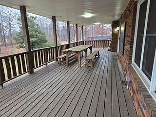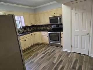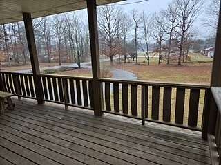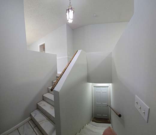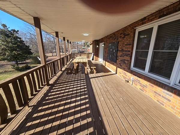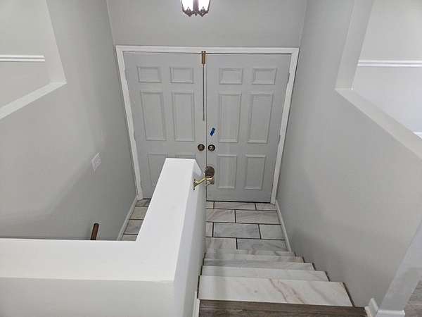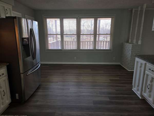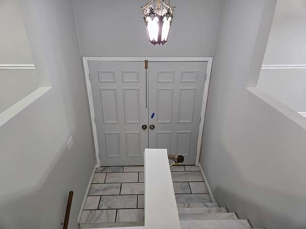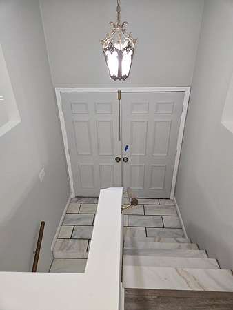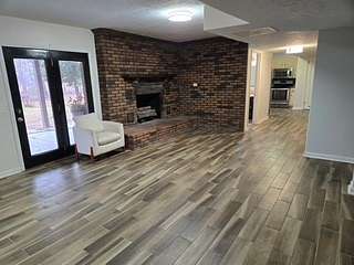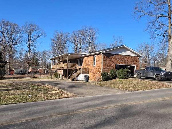 This inviting two-level home sits on nearly two private acres, offering exceptional space, flexibility, and the convenience of two fully equipped kitchens, perfect for hosting guests, accommodating extended stays, or creating separate living areas. The upper level features a spacious kitchen with granite countertops and a tiled backsplash, a bright living room, a comfortable den, three well-sized bedrooms, and two full baths with tiled showers. Elegant marble foyer steps, striking double front doors, and a cozy brick fireplace bring warmth and charm, while the attached two-car garage adds everyday practicality.