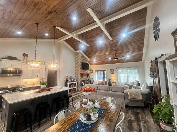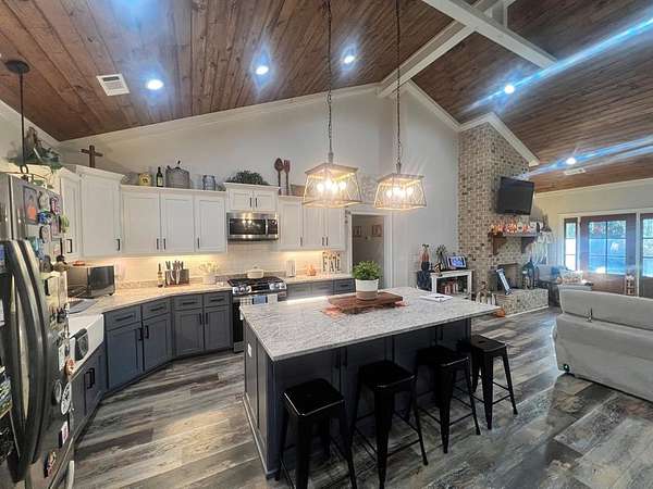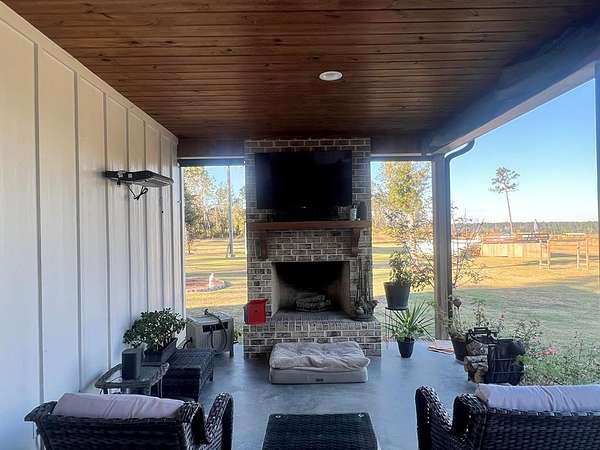 Est $3,100/moWelcome to the country! This beautiful 3 bedroom, 2.5 bathroom home sits on 8 acres. Several upgrades including granite countertops, custom cabinetry, large walk-in closets, tongue and groove ceilings, and stainless appliances. Outside, you can enjoy the open back porch, nestled by the masonry fireplace and outdoor kitchen. The 24x30 workshop is perfect for storage or work space. Also situated on the property is an above-ground pool with a 1 bedroom, 1 bath pool house, complete with a full kitchen and laundry room. Don't let this property pass you by. Call today to take a look.