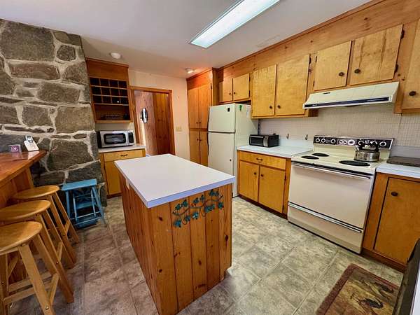 This 5BR/2BA Snow Mountain Farms home offers privacy and easy access to regional recreation. Built for family and friends, and tucked at the end of a quiet road with plenty of parking on a level circular driveway. The great room is anchored by a wood burning stone fireplace with cathedral ceilings, warm wood finishes, and an open flow to the dining area and kitchen. An oversized loft creates additional living space. Five bedrooms and two full baths provide flexible sleeping arrangements or the opportunity to create a home office or workout space. The full walk-out basement offers convenient exterior access and storage for outdoor gear. Kids (and the young at heart) will love the two-story treehouse tucked among the trees, for hours of creative play. This prime recreational location is conveniently located between Mount Snow and Stratton Mountain, with Bromley and Magic Mountains nearby. Snowmobilers will appreciate easy access to Vermont's extensive VAST trail network. The nearby Grout Pond recreation area and the Green Mountain National Forest offer hiking and exploring in the summer.The association maintains a newly renovated clubhouse with an indoor pool and outdoor tennis courts. Being sold furnished -- move right into your Vermont getaway and start enjoying ski and snowboard days, summer hikes, and family fun.