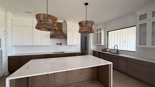 New construction in beautiful Burns, TN and this one is something special. Set on a sprawling green lot with views that go on forever, this modern white farmhouse delivers 3,611 sq ft of heated living space with a finished upstairs bonus room, bringing total under-roof space to 5,219 sq ft. From the wide front porch to the covered back deck, every inch of this home was designed with intention. Inside, the layout is elaborate in the best way, there is truly a room for everything. The open kitchen, living, and dining area is the heart of the home, finished with contrasting cabinets, a hand-picked lighting package, book shelves, the oversized hidden pantry will make you smile every time you open it. Designer details and beautiful trim work carry throughout, including crown molding and custom cabinetry that give the home a polished, elevated feel. Dedicated office and hobby/game room round out the main level, offering flexibility for however you live. The primary suite is on the main floor and completely separate from the secondary bedrooms. The en-suite bath features a standalone soaking tub, separate shower, and thoughtful finishes throughout. The primary closet connects directly to the laundry room and mudroom for seamless everyday living. The laundry room includes countertops for folding and plenty of storage, because details matter! Wood shelves line every closet in the home no wire shelving in sight. Upstairs, an oversize bonus room above the garage with a full bath is perfect for guests, a flex space, or separate den space. The 3-car garage keeps everything organized, and the utility storage bay keeps your workshop out of the weather, and out of the garage! The covered deck off the primary suite and great room and take in peaceful views of quiet horse pasture it feels like you're own private retreat while still just 15 minutes from schools, groceries, and everything you need in Fairview or Dickson. Backyard is level, and perfectly situated to add a pool!