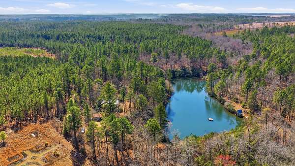 What would YOU do with 150 acres? This is your chance to find out! This unique 150-acre property is a true haven for those seeking privacy, family retreat, and / OR exceptional outdoor recreation. Tucked down a long, serene, and private driveway passing a diverse landscape of trees (re-planted pine tree & hardwood bottoms), the property centers around a picturesque 2.5 +/- acre pond alive with all of our wildlife and fishing awaits! At the heart of the property sits a charming 1,680-square-foot pond house built in 2010. The home offers four bedrooms and two baths with hardwood floors and a welcoming wood-burning fireplace creating a cozy retreat after a day outdoors! Expansive porches overlook the tranquil 2.5 acre pond, providing the perfect setting for morning coffee and an evening cocktail, checking out from ''reality'' and watching wildlife pass through the property. Outdoor enthusiasts will appreciate the exceptional recreational opportunities this property offers. The stocked pond features a quaint boathouse with a fishing deck, ideal for casting a line while enjoying the quiet surroundings. Abundant wildlife makes this an outstanding hunting property! The property also includes a fully fenced 8-foot garden area equipped with power and irrigation--perfect for growing your own vegetables and crops. Additional improvements include a small powered tractor shed and an extra storage outbuilding that can convey with the sale of the home. The land gently slopes toward Big Branch Creek, which forms the rear boundary and adds another scenic natural feature to the property. Conveniently located for easy access while still feeling worlds away, the property sits just 40 miles from Columbia Airport and 33 miles from Augusta Regional Airport. World-class golf is also nearby, including the renowned Palmetto Golf Club, Sage Valley, Tree Farm, and Augusta National. It is also conveniently placed nearby several equestrian venues including only 8 miles to Highfields, 10 miles to Bruce's Field, and 12 miles to Stable View. Properties of this size, beauty, and recreational quality are rarely available. This is a unique opportunity to own a turnkey sporting retreat where nature, privacy, and outdoor adventure come together. After all you should PLAY where you LIVE and LIVE where you PLAY! Seller willing to sell furnishings with an acceptable offer.