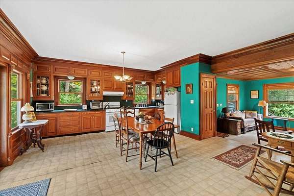 - Crown Molding, Eat-In Kitchen, Open Floorplan, Primary Bedroom Main Floor, Solid Wood Cabinets