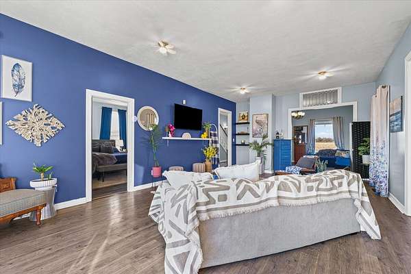 Welcome to 1502 East Winter Avenue, a spacious and inviting four-bed, two-and-a-half-bath home offering more than 2,500 finished square feet of comfortable, updated living space. Set on over three acres, this property delivers true privacy and peaceful country surroundings while still being just minutes from in-town amenities. The main level is designed for everyday convenience with a first-floor primary suite, first-floor laundry, an updated open kitchen with granite countertops and stainless steel appliances, and vaulted ceilings that create a bright, open atmosphere. The wood-burning fireplace anchors the living space, making the home feel warm and welcoming. Two oversized wraparound porches extend your living area outdoors and give the home a charming, farmhouse-style presence. Upstairs, you'll find three additional bedrooms and a full bath, providing plenty of room for family or guests. The sellers have invested in meaningful updates, including fresh paint and vinyl flooring throughout, a newer furnace, newer appliances, an opened-up floor plan with a removed wall, updated landscaping, and added a large shed. The outdoor space is a true highlight, featuring peach, apple, plum, and pear trees along with a variety of herbs, creating a peaceful and productive setting. This is a beautifully maintained, move-in ready home with space, character, acreage, and thoughtful improvements throughout.