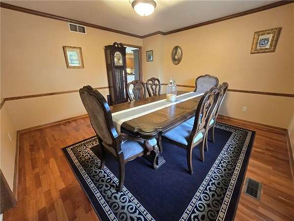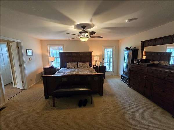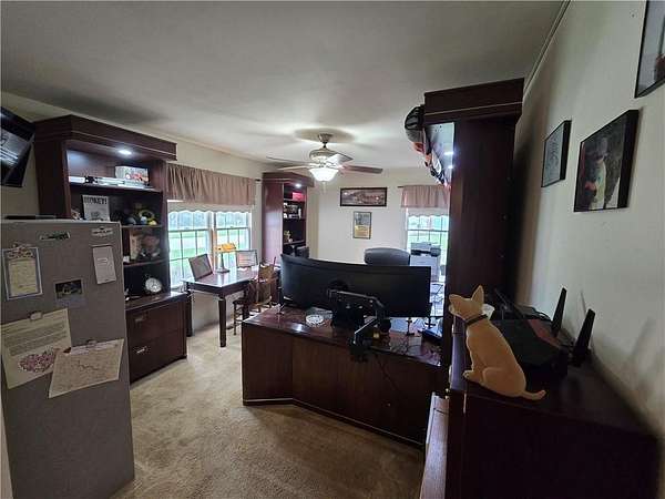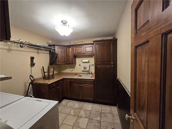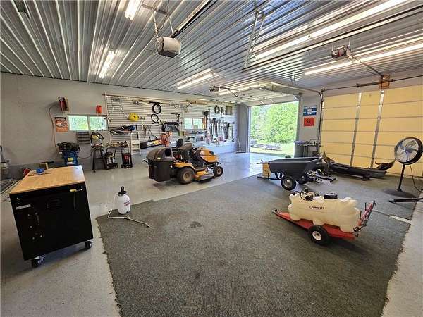 This expansive and beautiful home is situated on approximately 4.18 acres in a cul-de-sac. The formal entryway leads into the great room, which features a vaulted ceiling, fireplace, built-in bookcases, and access to the sunroom. The spacious kitchen is equipped with a cooktop stove, built-in ovens, ample cabinet space, and adjoins the mudroom, laundry room, and half bath. The main floor also includes the primary bedroom and bathroom, as well as an office and formal dining room. There are three additional bedrooms, and a full bath located on the second floor. The basement offers a recreational room, family room with wet bar, office space, a non-conforming bedroom currently being used as a workout room, and another full bath. The back deck opens to a picturesque backyard, which includes an outbuilding with oversized garage doors and a workshop area.