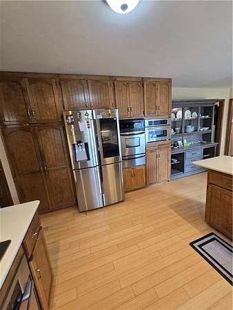 - Built-In Electric Oven, Built-In Oven, Cooktop, Dishwasher, Disposal, Gas Range, Refrigerator, Stainless Steel Appliance(s), Trash Compactor