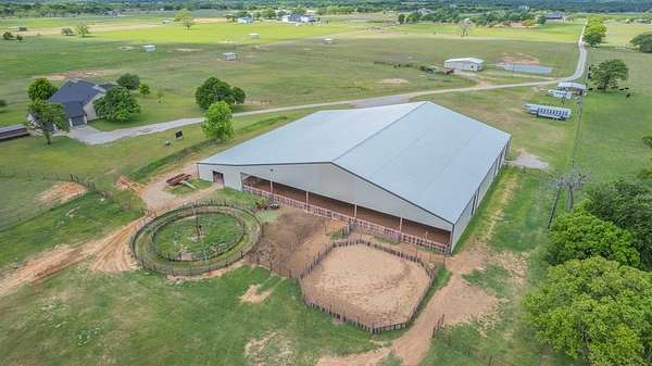 Set on 45.957 acres in one of the most sought-after areas of Parker County, this property is built for the serious horse enthusiast. The 2,768 sq ft home offers a comfortable, open-concept layout with 3 bedrooms, 2.5 baths, and a wood-burning fireplace that anchors the main living space. Upstairs is unfinished, giving you the flexibility to create additional living space, guest quarters, or anything that fits your needs.Out back, you’ll find a large yard complete with dog kennels, while the equine facilities truly set this place apart. The 130x130 working arena is already in place and can easily be extended. The heated barn features 18 stalls, a tack room, and a 2-bay wash rack designed for efficiency. Attached to the front of the barn are two 1-bedroom apartments along with an office—perfect for guests, help, or additional income potential.The land is well laid out with fenced and cross-fenced pastures using pipe and no-climb fencing. A spacious workshop provides plenty of room for equipment, storage, and projects.