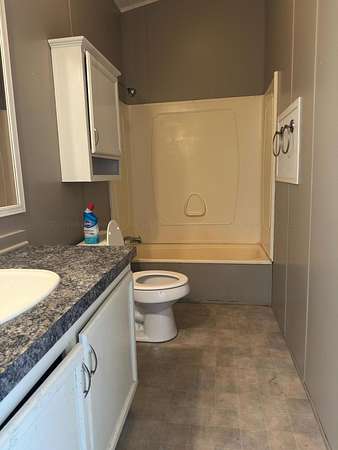 Est $638/moThree bed 2 bath manufactured residence with brick slab. Has been a rental so advanced notice needed for showing.