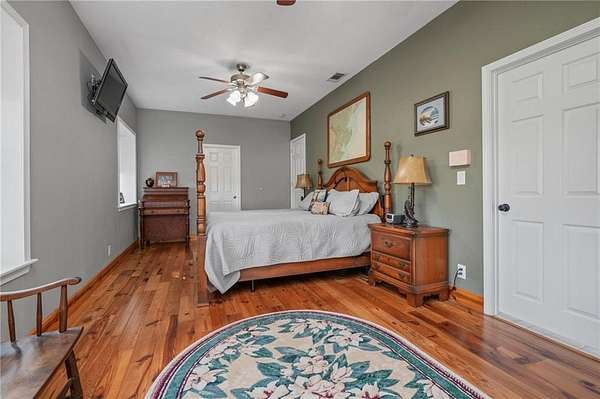 Experience the perfect blend of comfort, privacy, and natural beauty with this exceptional 5-bedroom, 3-bath home nestled beneath a canopy of majestic oak trees. Set on nearly 7 serene acres with the option to purchase 2 additional acres, this waterfront property offers the ultimate in Southern living, complete with a private boat launch, covered pier, and a spacious shop with dual roll-up doors--ideal for hobbies, storage, or outdoor equipment. The thoughtfully designed layout features a secluded upstairs mother-in-law suite with its own kitchen, bathroom, and a private covered porch--perfect for guests, extended family, or rental income. Enjoy an open-concept kitchen with custom cabinetry that flows seamlessly into the living and dining areas, ideal for entertaining and everyday living. The master suite is a true retreat, boasting a newly renovated spa-like bathroom featuring custom soft-close cabinets, a jetted soaking tub, separate oversized spa shower. Also, the master suite features double French doors that lead to a private deck overlooking the peaceful view of Fowl River. Additional highlights include an oversized attached double garage, a screened-in porch for year-round enjoyment, and craftsmanship throughout that reflects both quality and care. Whether you're boating at sunrise or relaxing on the pier at sunset, this unique property is more than a home--it's a lifestyle. Information entered in the MLS is provided for informational purposes only, without warranty of any kind, either express or implied, and no warranty is made that the information is error-free. The buyer is encouraged to verify all information and measurements.