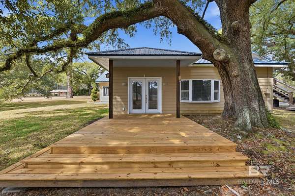*VALUE RANGE MARKET: SELLER WILL ENTERTAIN OFFERS BETWEEN $875,000-$925,000* Spacious Waterfront Retreat on Fowl River | 7 Private Acres with Majestic Oaks Welcome to your own slice of paradise on the scenic Fowl River. This stunning 3,455+- square foot home sits on approximately 7 beautiful acres shaded by mature oak trees, offering privacy, serenity, and breathtaking views in every direction. The main part of the home features 4 bedrooms and 2 bathrooms with an open-concept living and kitchen area designed for both everyday comfort and entertaining. Vaulted ceilings with rich stained wood create warmth and character, while plantation shutters throughout the main living spaces add timeless Southern charm. The spacious primary suite overlooks the picturesque property and includes a fully updated bath with a soaking tub, oversized walk-in shower, and dual vanities, plus a generous walk-in closet. Outdoor living is exceptional with a large covered front porch, covered balcony, covered patio, and a private patio just off the primary bedroom, perfect for enjoying peaceful river views and surrounding natural beauty. A 15-minute drive brings you to Dauphin Island, and by boat you'll enjoy easy access to the bay or island for fishing, boating, and waterfront dining. Above the two-car garage, you'll find a versatile bonus room or guest suite complete with a large bathroom, walk-in closet, separate living space with kitchenette, plantation shutters, and its own covered deck, ideal for guests, extended family, or potential rental income. Waterfront amenities include a private deck on the water, boat launch, and a storage shed with covered sides that could easily serve as a boat shed. A generator hookup is also available for added peace of mind. With 7 acres, beautiful mature oaks, and direct water access, this property offers the perfect combination of space, functionality, and coastal lifestyle. Don't miss this rare opportunity to own a private riverfront retreat. Buyer