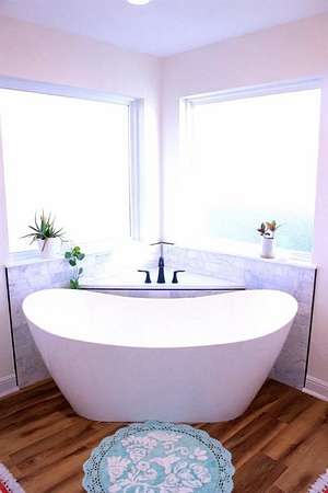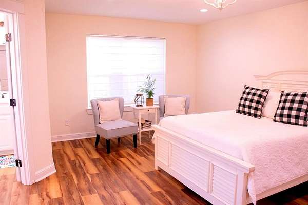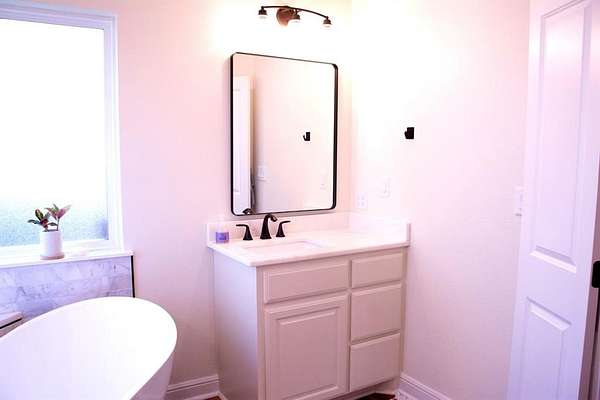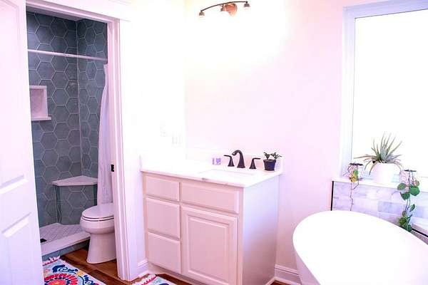 The main level primary suite provides a spa inspired retreat with a beautiful freestanding soaking tub, walk-in shower, and spacious closet. Two additional bedrooms downstairs each with their own bathroom vanity provide flexibility for family or guests.