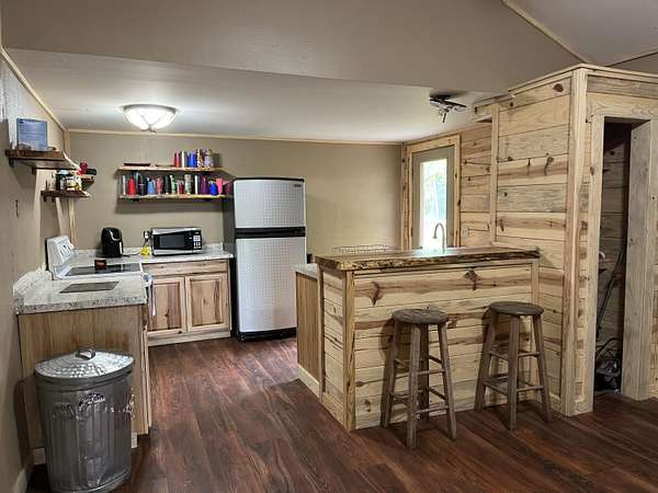 Ozark Opportunity Near Dawt Mill: Located just up the road from the scenic Dawt Mill, this versatile property offers endless possibilities--whether you're looking for a family home, a country getaway, or an income-producing Airbnb. Sitting on approximately 9.2+- acres, the home has been updated as time permits over the years, with some improvements completed--including a finished kitchen and updated flooring in several rooms. There's still work to be done, making this a great opportunity to finish things your way.Inside, you'll find 3 bedrooms, an office, a large living room with a cozy wood stove, and an open-concept kitchen and dining area. The full bath also houses the laundry area for added convenience. A propane wall heater and a window unit with a heat setting provide additional comfort.Outdoor features include a covered front porch, a side deck, and a back porch--perfect for relaxing and taking in the peaceful surroundings. A sturdy concrete storm shelter sits just off the back of the home for added safety. The property also includes a two-car carport and a storage shed that needs repair or replacement, depending on your carpentry skills.With beautiful wooded views, a powerline easement that could double as pasture land, and close proximity to rivers and the Mark Twain National Forest, this property offers the best of rural Ozarks living. Priced as-is but completely livable--bring your vision and make this your own little paradise!