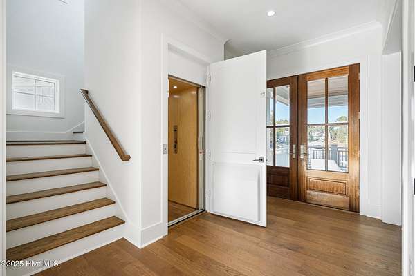 Elegant New Construction! This exquisite 3 story residence features 4426 square feet of coastal living. Breathtaking southern porches that invite you to enjoy extrarordinary sunsets, water views and coastal beauty. Welcome to waterfront living at its best with this exclusive gated community, Preservation Point. Designed by local award-winning architect, Scott Sullivan this home boasts 4 bedrooms, each thoughtfully designed to provide comfort and privacy. Spacious primary bedroom is on the third level overlooking the picturesque water with a generous walk-in closet and an expansive spa bath with a wet room and shower. Enjoy seamless access to all levels of your coastal haven with a private elevator, combining luxury and convenience. The open floor plan includes a gourmet kitchen equipped with top-of-the-line Bosch appliances, creating the magnificent setting for chefs and entertainers that flows into an expansive living room. In addition, there is a formal dining room, and a large office/multipurpose room. Throughout the home custom wood cabinetry adds a touch of elegance, while abundant light creates a warm and inviting atmosphere. 2 covered decks with one screened in with an additional grilling space. Outdoor shower. This home provides 4 garage spaces ensuring you have room for all your vehicles and recreational gear. Preservation Point offers numerous amenities such as a refreshing pool, walking trails, fitness center, and State of the art clubhouse. The private island sanctuary features a marina, pickleball courts, kayak launches, frisbee, golf, grilling stations, and a dog park providing many opportunities for recreation and relaxation. Located just minutes from downtown Wilmington and local beaches, this exclusive enclave offers an unparalleled lifestyle of luxury and tranquility. Seize this rare opportunity to call Preservation Point home and live the epitome of luxury! Set up an appointment today!