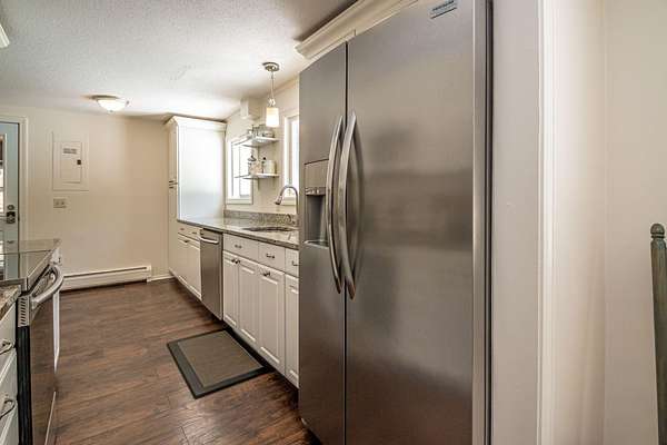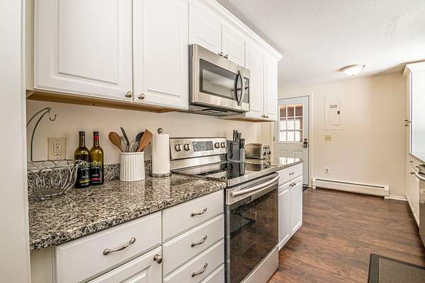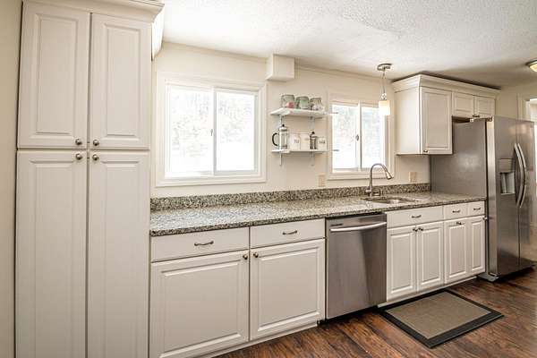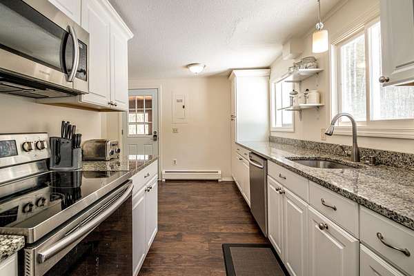 Discover the ultimate blend of comfort and convenience in this sun-drenched 3-bedroom, 2-bath ranch, perfectly situated on nearly two acres in low-tax Bartlett! Designed for effortless one-level living, this home features thoughtful updates throughout that balance modern style with a cozy mountain vibe. At the heart of the home, a charming stone-hearth gas fireplace creates an inviting focal point for chilly evenings. The sleek galley kitchen features granite countertops and plenty of workspace that connects into the dining area for easy meal prep and makes for effortless entertaining family & friends alike. Master bedroom with private bath. Throughout the home, you'll find fresh newer flooring too. Grab a book and step into the three-season porch to enjoy your morning coffee or afternoon drink. Whether you’re looking for a perfect starter home or a serene mountain getaway, this special home could be just what you are looking for! OPEN HOUSE SATURDAY 3/28 FROM 2-4PM