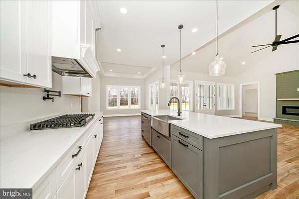 Custom built craftsman home nestled on 1.7 acres in rural Frederick County. Experience the perfect blend of rustic surroundings and modern details in this beautiful, newly constructed contemporary home. Lots of curb appeal with crisp white batten board siding and black framed windows. The first floor is open concept with 10-foot ceilings, throughout. Gourmet kitchen with functional, working pantry fit with custom cabinetry, shelving, beverage fridge and countertops. Plenty of island space for entertaining. Spacious living room with custom gas fireplace and double oversized doors leading outside to a covered back porch. Hard wood floors throughout. First floor primary bedroom, ensuite, laundry and powder room on one side of the home, while two additional bedrooms and shared bath preside on the opposite side. Large additional bedroom room located on the second floor with its own private, full bathroom. Basement level is walkout with endless opportunities: add additional living space, home gym or office. Cement framed room in basement for a potential wine cellar or saferoom. Protected farmland surrounds this home ensuring privacy for years to come. Back yard is a blank canvas, ready for you to create your own private sanctuary with a garden, patios, or pool.