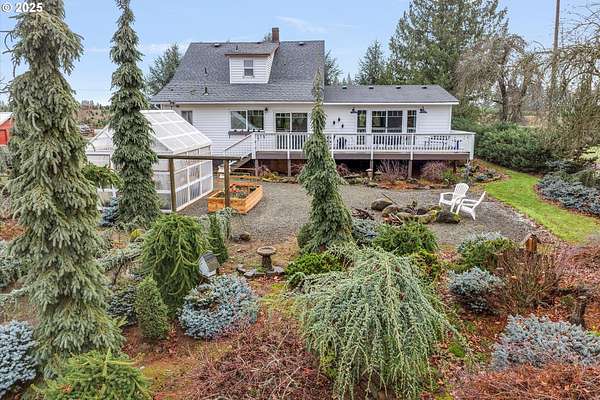 Experience modern convenience with all of the charm of an updated 1925 farmhouse. The kitchen is charmingly re-done with quality appliances, cabinets and a long butcher board island. Off the kitchen is a newer rear deck excellent for outdoor living or just looking over your property. Fourteen acres of useable land fenced and cross-fenced with buried irrigation main lines. Six large greenhouses with plastic covers and natural ventilation. This is a working nursery and can continue as such or be used entirely as a horse or cattle facility. Six horse stalls, each with its own paddock, abut the 30' x 48' shop. Included are hay storage, an equipment area and a wash rack. Maintenance is excellent. Plants and some equipment are negotiable.