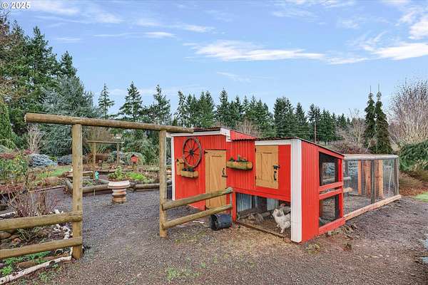 - Barn, Corral, Fire Pit, Garden, Poultry Coop, RV Boat Storage, RV Parking, Raised Beds, Security Lights, Yard