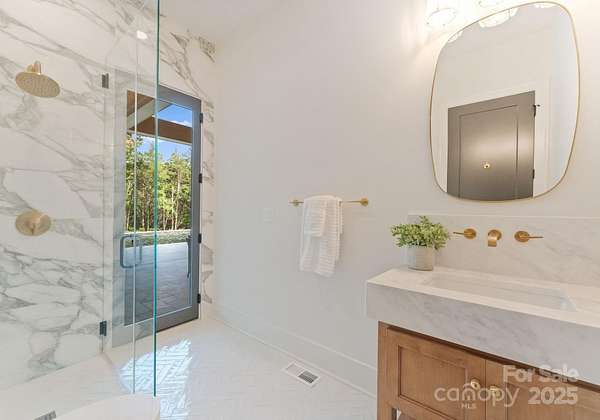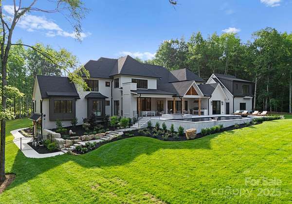 A true masterpiece of modern luxury, this newly constructed 9,570 sq ft estate is tucked away on over 10 pristine acres in one of Davidson's most prime locations. Enter through a long, private driveway and remote-controlled gate to discover a home that offers total seclusion while just minutes from downtown Davidson, River Run Country Club, Lake Norman, and equestrian facilities. Designed to impress, the open floor plan is anchored by a state-of-the-art gourmet kitchen with top-tier finishes and flows effortlessly into expansive living and entertaining spaces. Highlights include a custom wine room, full bar, resort-style pool and spa, outdoor kitchen, sauna, and a hidden safe room. The attached nanny quarters offer added flexibility for guests or extended stays. Whether you're entertaining or relaxing in complete privacy, this one-of-a-kind estate blends elegance, comfort, and sophistication in a setting that feels like your own private world-yet is close to everything.