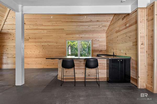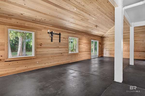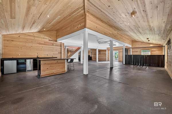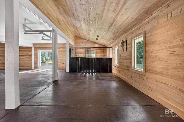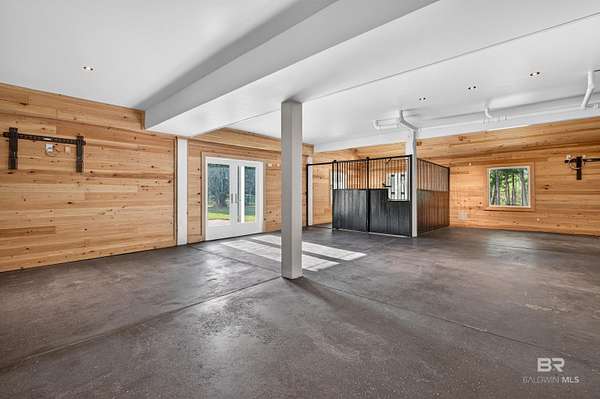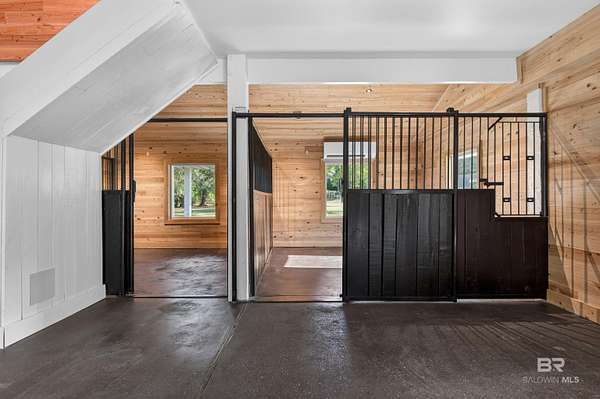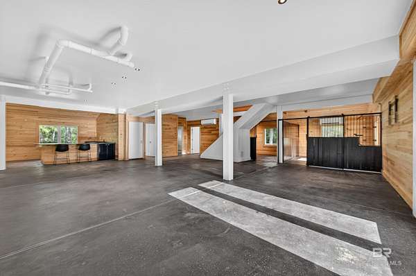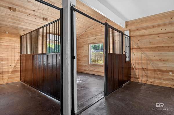 An eclectic retreat at the headwaters of the Magnolia River with nearly 395 ft. of river frontage on 2.5 acres. This 3 bedroom, converted historic stable, with all the comforts of modern living including Starlink, is perfect for those seeking peace and quiet with room for their animals. Originally designed as a working horse stable with a living apartment on the second floor, the stables have been transformed into an exceptional living and entertaining space. The renovation preserves the charm of the original iron stalls while adding a full wet bar, third bedroom with bathroom and shower, and milled cypress wood paneling from floor to ceiling. The result is a warm, rustic setting nestled in what feels like a nature preserve. This home and property are perfect for gatherings and has the potential for many other venues. Upstairs the home features two bedrooms, a fully renovated Jack ‘ Jill bathroom with a new shower and vanities, and hard wood pine floors and doors. There is a fully renovated kitchen with all new appliances and a multi-level porch with views of the river and surrounding property. A new washer and dryer were recently added to the laundry room. You can launch your kayak and paddleboard from one of two wooden docks on the river. Walk to Jesse's Restaurant and the Arboretum & Gardens. The 12 months plus renovations began in 2022. The entire interior of both floors was stripped, and new electrical wiring, plumbing and HVAC systems were installed. The attic space and first floor walls are sealed with closed cell foam. The first-floor exterior was also completely renovated using hardboard, and hurricane proof windows and doors. The home is wired for modern technology and already has a Starlink system installed that can be transferred to the new owner. There is a new buried 1,000-gallon propane tank powering a new, 26 kw generator if ever needed, and a tank-less water heater. With its well, this home is self-sufficient. Buyer to verify all information during