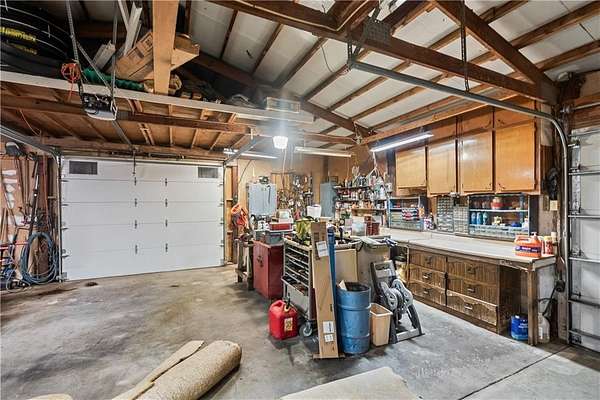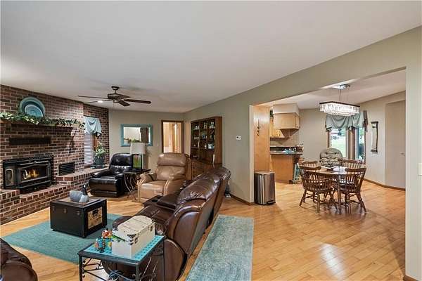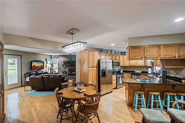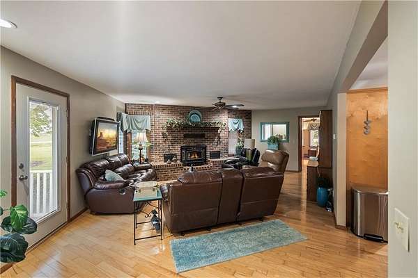 If you've been dreaming of a little space to spread out without giving up comfort, this one feels like home the minute you pull in. Set on 9.13 acres, this 3 bedroom, 2 bath ranch offers 1,793 square feet of easy, single-level living with room to breathe inside and out. Step through the door and you're welcomed by warm hardwood floors that run throughout the home, creating a cozy, connected feel. The living area centers around a wood-burning fireplace, perfect for slow evenings and gathering with family or friends. The kitchen brings a touch of modern style with granite countertops, and all appliances stay, making the move-in process simple. Both bathrooms have been updated with LVP flooring for durability and style, while central HVAC keeps things comfortable year-round. Updated windows and insulated siding help create a quieter, more efficient space, even with the convenience of nearby highway access. Outside is where this property really starts to tell its story. Whether you're working, tinkering, or just need extra storage, the detached 2 car garage/shop is ready to go with two overhead doors and its own wood-burning stoves. There's also an additional outbuilding with an overhead door and lean-to, plus a small shed for all the extras. Dog pens are already in place and will stay, making it easy for your four-legged companions to settle in too. You'll find yourself drawn to the outdoor spaces, from the covered east-facing patio that's perfect for morning coffee to the pergola patio on the south side, ideal for winding down at the end of the day. With a roof that's only 5 years old and low-maintenance vinyl siding, the big items are already taken care of. This is the kind of place where you can slow down a bit, enjoy the land, and make it your own, whether that means gardening, hobbies, or simply enjoying the quiet of country living.