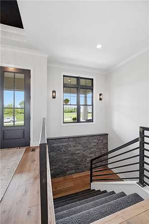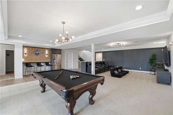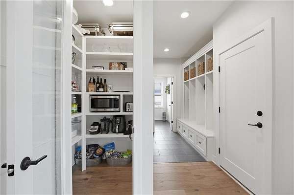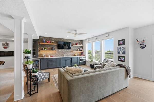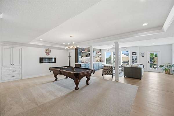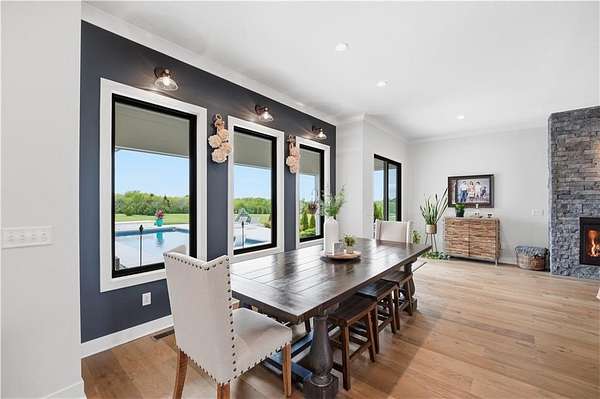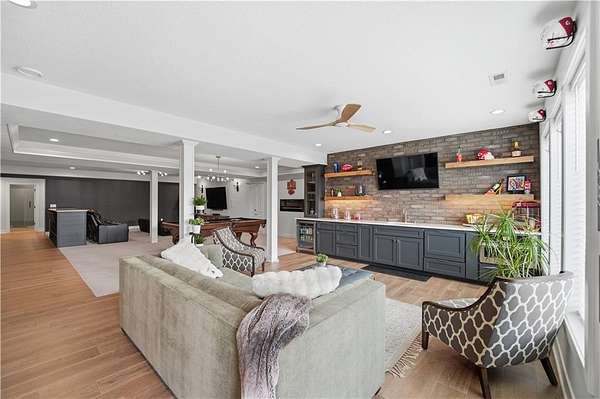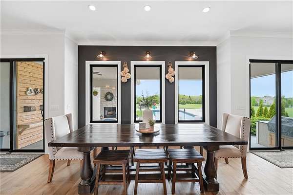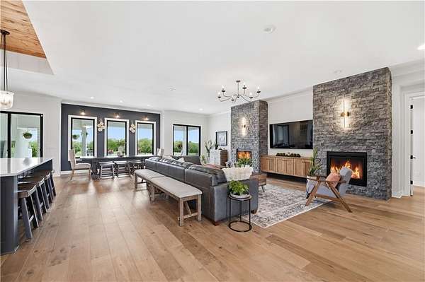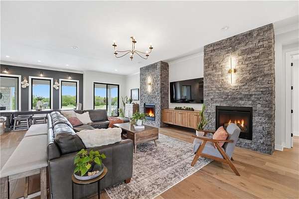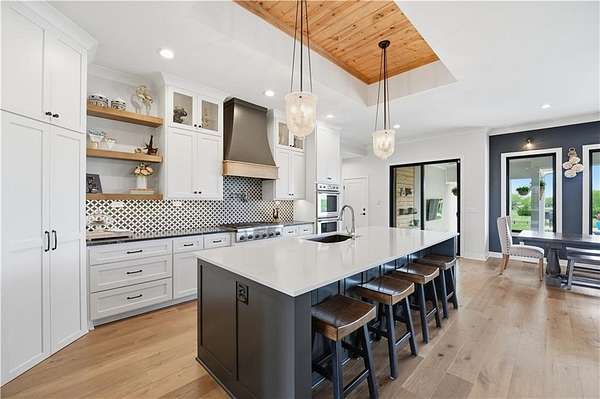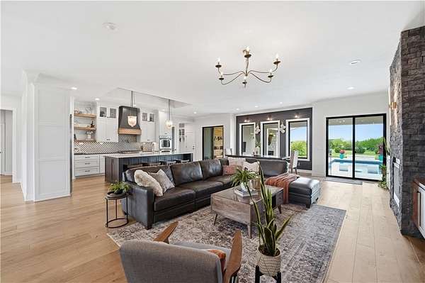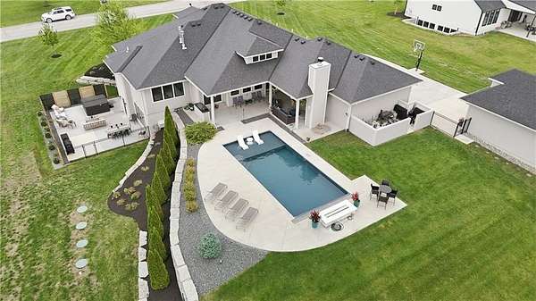 Welcome to Mulberry Hill Estates-where craftsmanship, intention, & luxury come together in this one-of-a-kind home built by Anderson Homes as the builder's personal residence. Situated on just over 2 acres, this custom estate showcases elevated design & high-end finishes throughout. From the moment you enter, you'll notice 8-foot doors, crown molding, & real iron welded railings that set the tone for the quality found throughout. The living room features dual fireplaces, custom sconces, & layered lighting, creating a warm yet sophisticated space ideal for relaxing & entertaining. The kitchen is the centerpiece of the home, anchored by a massive 10' island with storage on both sides, custom cabinetry, quartz & granite countertops, & a marble mosaic backsplash. Enjoy top-tier Viking & Thermador appliances, a gas range with pot filler, paneled dishwasher, & three pantry spaces, including a beverage room with butcher block counters & wine fridge-perfect for hosting. The primary suite offers a true retreat with a feature wall & spa-like bathroom featuring a soaking tub, oversized walk-in shower with rain head, heated floors, & a custom closet with built-ins. The main level continues with a spacious laundry room that can double as a home office, along with two additional bedrooms & bathrooms. The lower level is designed for lifestyle & entertaining, featuring hardwood floors with vapor padding, surround sound, a full gym, second laundry setup, & a lounge area that opens to a private courtyard. You'll also find two additional bedrooms & a full bath with heated floors. Outdoor living shines with a mineral pool featuring a tanning ledge, auto cover, & gas fire feature, plus a built-in grill & wood-burning fireplace. A 3-car attached garage & separate heated/cooled 3-car tandem detached garage with pool house & full bath complete this exceptional property. A rare opportunity to own a builder's personal home with unmatched detail & design.