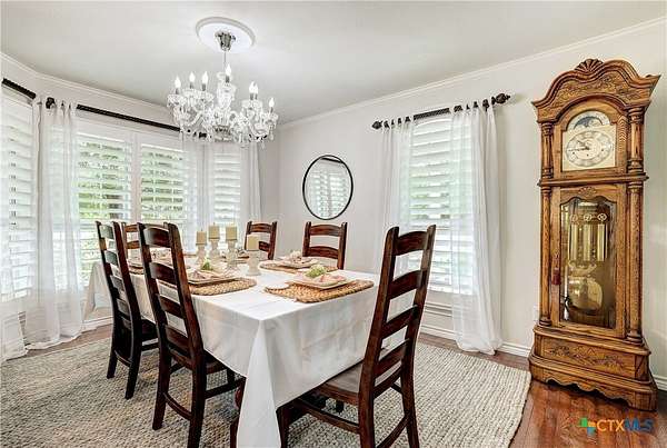 - Attic, Breakfast Area, Breakfast Bar, Cathedral Ceilings, Chandelier, Dining Area, Double Vanity, Eat In Kitchen, Entrance Foyer, Granite Counters, High Ceilings, Jetted Tub, Main Level Primary, Open Floorplan, Pantry, Primary Downstairs, Separate Formal Dining Room, Separate Shower, Walk In Closets, Window Treatments