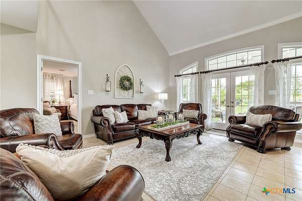 Some of us weren't made for the noise-we were made for wide-open skies, room to roam, and sunset views. Welcome to 1505 CR 315, your own slice of paradise on two peaceful, unrestricted acres. Behind a gated entry, this thoughtfully designed home offers timeless farmhouse style with warm details throughout. A dreamy wraparound porch-complete with ceiling fans-invites slow mornings and long evenings overlooking your land. Inside, you'll find soaring beamed ceilings, sun-drenched rooms, and a striking two-story white stone fireplace anchoring the living space. French doors with plantation shutters and large custom windows frame picture-perfect views. Host with ease in the formal dining room and spacious eat-in kitchen, featuring a wainscoted island, glass-paneled cabinets, pantry, and double oven. The main-level primary suite opens to the back patio and includes a dual vanity, garden tub, and walk-in closet with custom shelving. Upstairs, two secondary bedrooms offer built-in desks and countryside views, plus access to a shared full bath. A sweeping mahogany staircase adds architectural charm, while the oversized laundry/mudroom keeps life functional. Outdoors, enjoy mature landscaping, a storage shed, carport, and freedom to garden, keep animals, or just breathe it all in-no HOA. If you're craving quiet, connection, and space to unwind... this is home.
