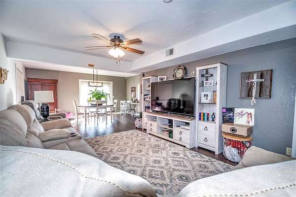 Welcome to this charming 2-bed, 2-bath home situated on approximately 2.5 acres MOL, offering 1,655 sq. ft. of comfortable living space. The spacious primary bedroom suite boasts a generous walk-in closet and a beautifully updated bathroom with double sinks and a walk-in shower. Enjoy abundant natural light in the 204 sq. ft. sunroom-perfect for relaxing or entertaining year-round. The kitchen features ample cabinet and counter space plus newer appliances. Outside you'll find a privacy-fenced yard, a storm shelter, and a 30x30 shop with concrete floors and electric service. The shop includes a heated and cooled bonus room with a mini-split-ideal for a game room, workshop, office, or hobby space. Don't miss this exceptional property offering comfort, functionality, and space!