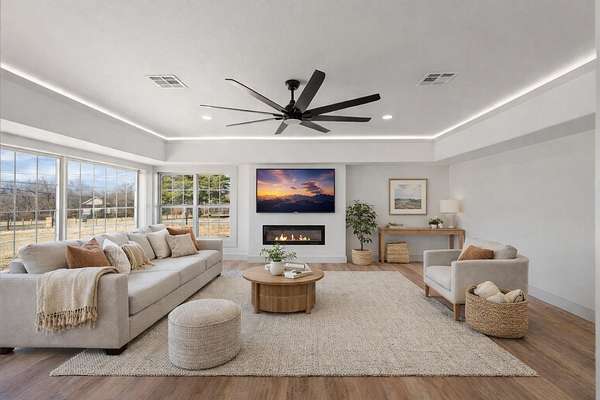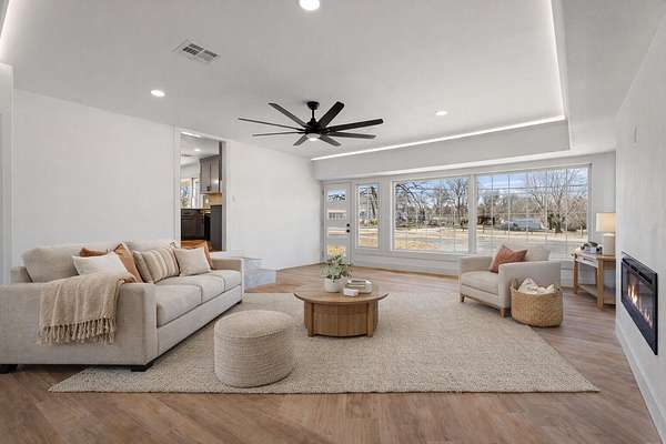 Just outside of Miami and only a mile from the Fairgrounds, this fully renovated 4-bed, 2-bath, 2,265 sq ft brick home blends modern style with comfortable, spacious living. Completely redesigned down to the studs in 2025, this home lives like new with a thoughtful split floor plan and high-end finishes throughout. Step inside to find all-new flooring, paint, plumbing, electrical, roof, and HVAC. The brand-new kitchen features modern cabinetry, sleek countertops, and new appliances, opening into one of the home's two inviting living areas. An electric fireplace adds warmth and character, perfect for cozy evenings. With four bedrooms, including a private primary suite, the single-story layout offers flexibility for families, guests, or a home office. The second living room provides extra space for entertaining, relaxing, or creating a dedicated game or media room. Outside, enjoy just over 2 acres of open space, a back patio, two storage buildings, and a storm shelter for a peace of mind. A large circle drive provides plenty of parking and easy access. This home is truly move in ready. Modern, spacious, and nestled in a convenient location with the privacy of country living. A rare fine with no detail overlooked! OWNER/AGENT