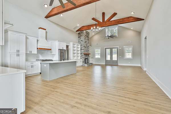 WELCOME TO BLACKWATER ESTATE - A PRIVATE 69+/- ACRE SANCTUARY WHERE MODERN LUXURY, HISTORIC CHARACTER AND NATURAL BEAUTY INTERTWINE. This exceptional property showcases a newly constructed custom home, a 2,700 sq ft guest house and workshop, a historic mill site, an old barn and the distinctive Blackwater Station, originally built for the movie Lawless. Complementing the residences are six fenced pastures with shared cross fence watering troughs, two wells, a beaver pond, duck pond and the shared Elders Millpond. In addition, you also have the Little White Oak Creek and Pete Branch meandering through the land. Designed for both comfort and self-sufficiency the estate also features underground propane tanks, a whole-house Generac generator, Spectrum WiFi service and ample space for livestock, recreation and relaxation. | THE MAIN residence offers complete privacy and stunning views of your pastures, sunsets and surrounding wildlife. Inside you'll find a flowing open design that balances rustic warmth with refined finishes. The kitchen opens to the family room showcasing wood-accent beams, custom built-ins and an electric fireplace you can use year round. A sunroom filled with natural light provides the perfect setting for peaceful mornings or quiet evenings. The luxurious master suite is a true retreat complete with a flexible adjoining room ideal for a dressing space, nursery, secondary closet or workout area. The spa-style master bath features heated floors, dual vanities and a Smart mirror with dimming, heating and Bluetooth features. You will also enjoy the dual shower, custom walk-in closet with built-ins and a hidden safe room. Additional highlights include spray foam insulation, two 500-gallon underground propane tanks, on-demand hot water, separate HVAC systems and a smart garage camera system. The 3-car garage includes a half bath, pull-down attic stairs and abundant storage-ideal for seasonal decor and equipment. The butler pantry, walk-in pantry, laundry room and mud room are all separately designed for ease and organization making daily living effortless. | BEYOND THE main home, the 2,700 sq ft guest house and workshop provides remarkable versatility with two bedrooms, one bath, a full kitchen, family and dining areas, plus two large workshop spaces and a tool room-all overlooking the pond and pastures. The covered patio with its stacked-stone and brick outdoor fireplace invites cozy gatherings under the open sky. | HISTORY WHISPERS through the property at the site of the original Elder's Mill, built in the late 1800s and once powered by the waterfall that still flows today. While the original structure is gone its foundation endures as a timeless reminder of the land's heritage-so much so that Elder's Mill Road was officially named after it in 1898. Completing the estate are two unique historical structures-the old barn and Blackwater Station, both constructed for the Lawless film, adding a cinematic legacy to this extraordinary setting. From the peaceful flow of Little White Oak Creek to the sparkling surface of Elders Millpond this is more than a property-it's a destination of elegance, history and heart. Blackwater Estate offers a once-in-a-lifetime opportunity to own a place where craftsmanship, comfort and legacy converge in perfect harmony.