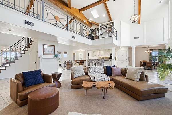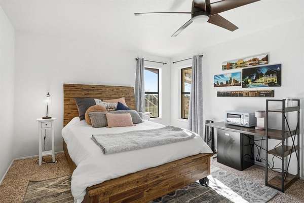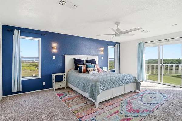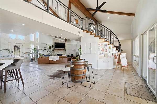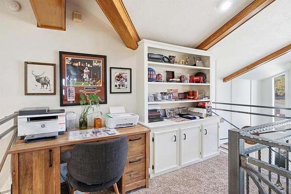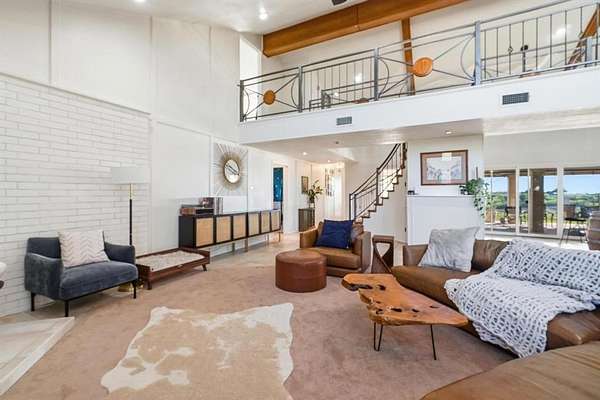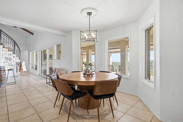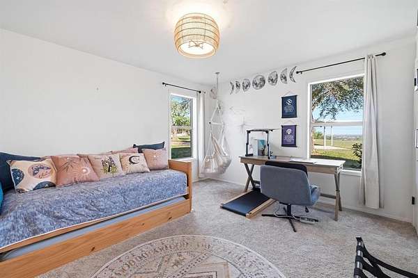 Welcome to this one-of-a-kind retreat on 1.88 acres in one of Coleman’s most desirable neighborhoods, where striking architecture, breathtaking views, and peaceful country living come together. This expansive 4-bedroom, 4-bath home is designed to impress from the moment you walk in offering approximately 3,300 sq ft for both comfortable living and entertaining. The main living area features soaring two-story ceilings with beautiful wood beams and an electric fireplace creating a warm yet dramatic focal point. Enjoy a formal dining room, breakfast nook, and hidden bar beneath the stunning curved oak staircase--an unforgettable architectural feature. The thoughtfully designed kitchen offers abundant cabinet space, ideal for storage and functionality while a dedicated, newly renovated office provides flexibility for work or additional bedroom use. Upstairs, the private primary suite serves as a true retreat, includes a beautifully updated bath with soaking tub, separate shower, and access to a personal turfed deck with panoramic views of Memory Lake, surrounding countryside, and even glimpses of Santa Anna Mountain. From here enjoy the extraordinary backdrop for both quiet mornings and relaxing evenings while witnessing the most breathtaking sunsets. Step outside and experience the serenity of this property. Outdoor amenities include a large covered patio, fenced backyard, greenhouse, and frequent wildlife sightings. Additional features include 4-car garage, circular driveway, garage storage room, exterior storage closet, fiber internet availability, and no HOA. Recent updates include roof, interior paint, lighting, fixtures, select siding, radon mitigation system, renovated office, and turfed deck. Kitchen appliances to convey include dishwasher, oven, built-in microwave, refrigerator, ice maker, and electric cooktop. Conveniently located just minutes from downtown Coleman. Rare opportunity to own a truly unique home with unmatched views and character in Coleman.