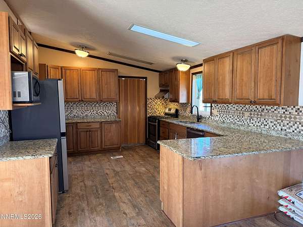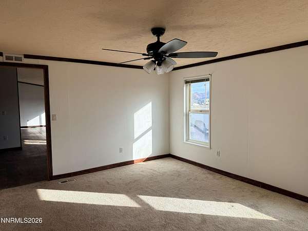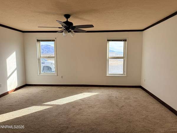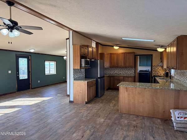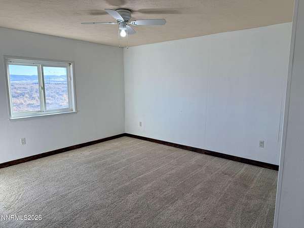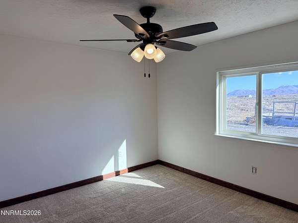 Welcome home to this beautiful 3 bedroom, 2 bathroom property offering over 1,700 sq ft with a desirable open split-bedroom floor plan, tucked away at the end of the road for added privacy. Step inside and you'll love the spacious main living area featuring a large living room, dining area, family room, and kitchen, all highlighted by vaulted ceilings that give the home an open, airy feel. The kitchen is a standout with granite countertops, stainless steel appliances, a tile backsplash, and tons of cabinet and counter space, including two Lazy Susans, soft-close drawers, and a convenient breakfast bar. The family room includes a pellet stove to help supplement the propane forced-air heating system, and the home also features an electric on-demand water heater. The laundry area includes a large pantry and offers potential for additional storage or future 1/2 bath. The primary suite is generously sized with two walk-in closets, and the primary bathroom has been recently updated with new flooring, vanity with double sinks, updated faucets, mirror, and fresh finishes. The guest bathroom has also been updated with new flooring, vanity, and toilet. Additional features include ceiling fans in all bedrooms and main living areas, professionally cleaned carpets, a freshly cleaned home, and most of the interior recently repainted. Outside, you'll find a wide open space ready for your vision - perfect for animals, toys, a shop, garden, or simply enjoying the Nevada outdoors. The property was previously cross-fenced and could be fenced again with minimal effort. Previous owners even created a dirt bike track, showing just how much room there is to enjoy the land. If you've been looking for a well-maintained home in Battle Mountain, Nevada with space, updates, and a great layout - this one is a must see! More pictures and 3D Tour coming soon.