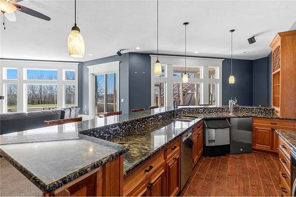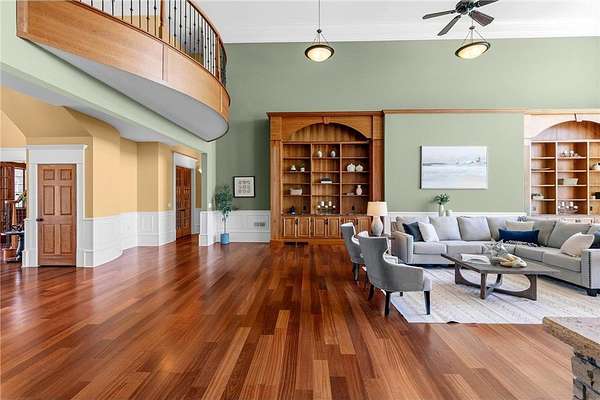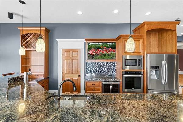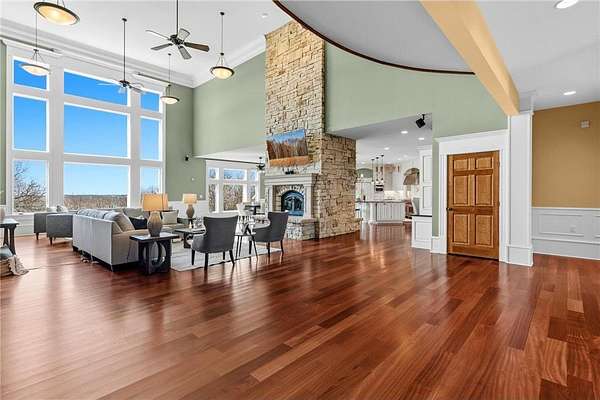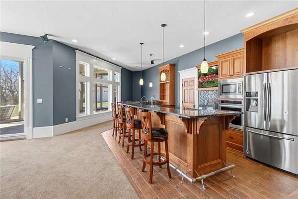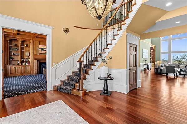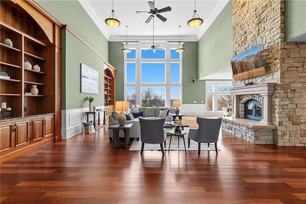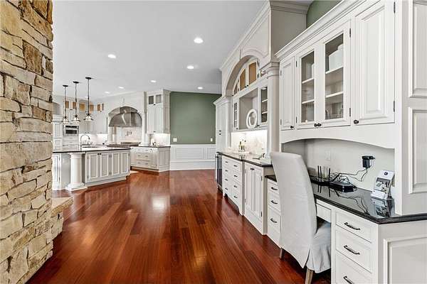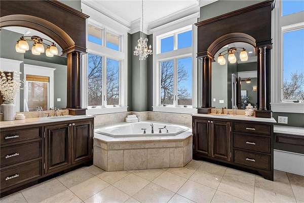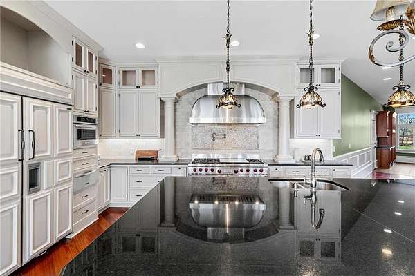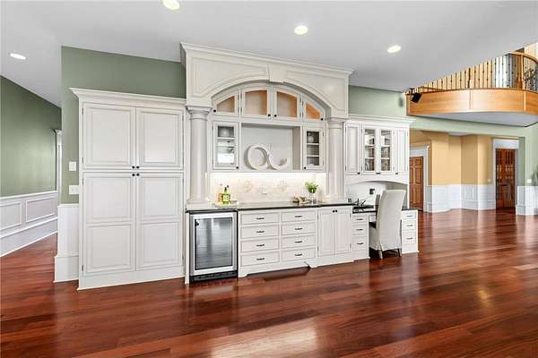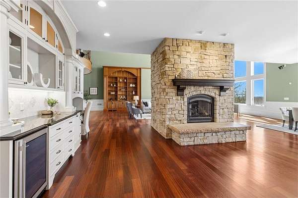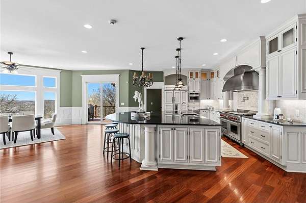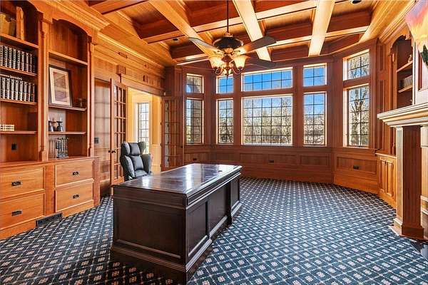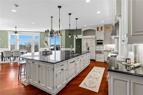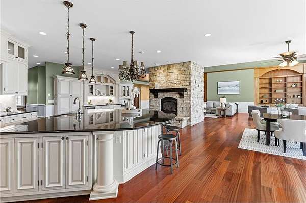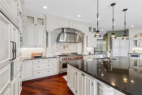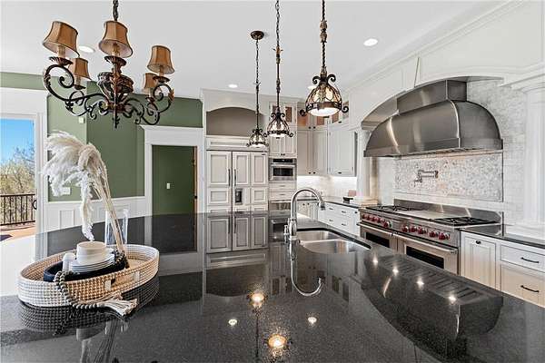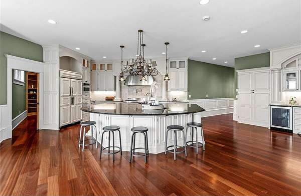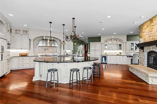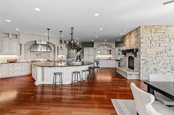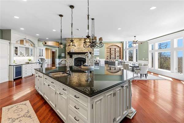 This 7-bedroom, 8-bathroom home showcases quality craftsmanship throughout, including full-bed-depth St. Croix limestone, soaring 10 to 22-foot ceilings, five fireplaces, and extensive custom millwork and cabinetry. The gourmet kitchen features Wolf and Sub-Zero appliances, a large pantry, and opens seamlessly to the main living spaces - ideal for both daily living and entertaining.