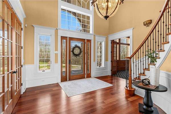 Energy-efficient features include a 38 kW solar system that significantly offsets utility costs, zoned heating and cooling with air source heat pump, in-floor heat, Andersen windows, and upgraded insulation throughout.