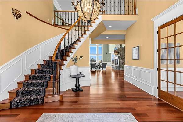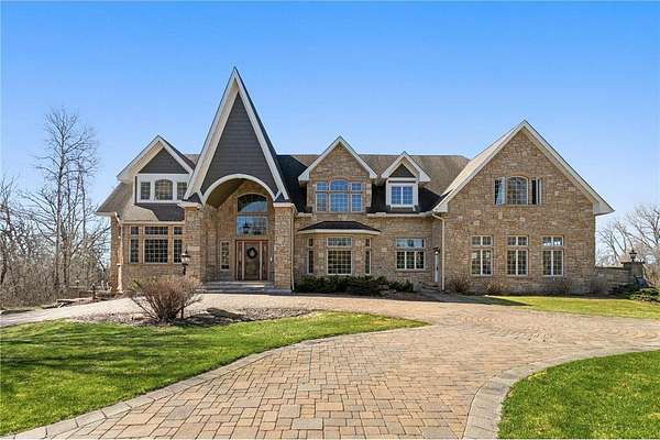 Set at one of the highest elevations in Washington County, this French Chateau inspired estate offers sweeping panoramic views of the St. Croix Valley, including Hudson, Afton, Woodbury, and Lake Elmo. Situated on a private 3.62-acre wooded cul-de-sac lot, it combines privacy with convenience -just 15 minutes to downtown St. Paul and 25 minutes to Minneapolis.