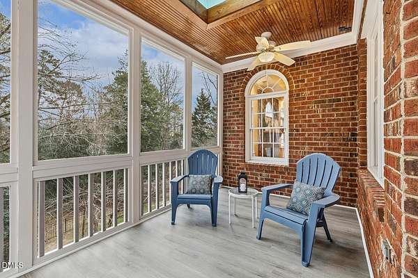 Gorgeous brick home on 1.69 wooded acres in highly sought-after River Oaks! Whether you're a nature lover or a gardener enthusiast, you will love the serene and private picturesque outdoor oasis which changes with the seasons. Ring cameras are in place for viewing the comings and goings of both people and wildlife! There are a variety of outdoor spaces that can be used for recreation, gardening, grilling, and relaxing. This home offers a screened porch with luxury vinyl floors, an expansive tiered deck, spacious lower covered patio, fenced yard, and irrigation system. The side-entry garage and classic curb appeal are complemented by modern updates including a 2021 roof and 3 HVAC units (2024, 2022, 2011). Inside, the home showcases hardwood floors throughout the main level, and electric remote-controlled EcoSmart window shades in the office, dining room, and primary bath. The gourmet kitchen features brand new Quartz counters, stainless appliances, a Solatube skylight, center island, veggie prep area, and walk-in pantry. Relax in the family room by the stone-surround fireplace. The main-level owner's suite offers a spa-like bath (remodeled 2022) featuring Hanex counters, a free-standing tub, walk-in shower, Italian tile flooring, and private deck access. Additional features include a formal dining room, home office, and two spacious bedrooms sharing a Jack-and-Jill bathroom. On the lower level, there are additional living areas that could be an in-law suite, guest, or teen space. The kitchenette and wet bar area adds to the functionality. The beautifully finished, walk-out basement also includes plenty of space for a recreation room, game room, exercise room and/or any other hobbies and interests. And don't miss the room suitable for wine storage. You will also find a spacious workshop with plenty of countertop/bench area, electrical outlets, as well as plentiful storage. Enjoy community amenities: pool, clubhouse, tennis, and pickleball, with easy access to Neuse River Greenway, Falls Lake, WakeMed North Hospital, shopping, US-1, and I-540! For those who love a quick stroll to restaurants, Brixx wood-fired pizza, Mamacita (Mexican cuisine), Bowlba Cafe, and River Pub are nearby.