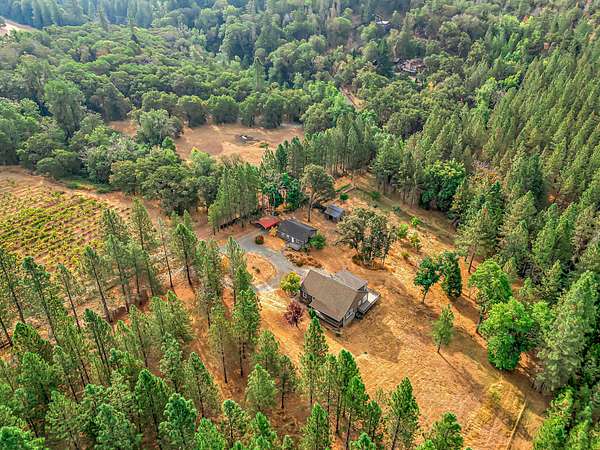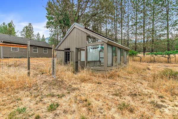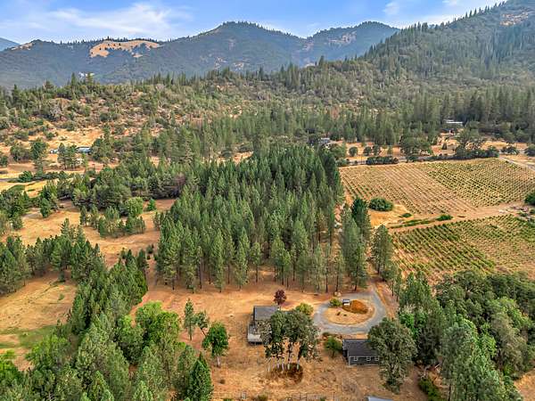 Just four miles north of Applegate, this hidden gem offers ten acres of fertile land along Slagle Creek, with vineyard views and a peaceful country setting. The 1,488 sq ft main residence, built in 1992, features new 30 YEAR ROOF, a new redwood deck, vaulted ceilings, a pellet stove, A/C, an open staircase, sunroom with retractable awning, utility room, and oversized finished garage. A separate guest room with full bath and adjacent shop provide flexibility for visitors or creative projects. Outdoors, enjoy a barn/greenhouse, deer-fenced orchard and garden, in-ground sprinklers, and the tranquil creek. Whether you're dreaming of a hobby farm, nature retreat, or serene lifestyle, this property blends beauty and function in an idyllic location.